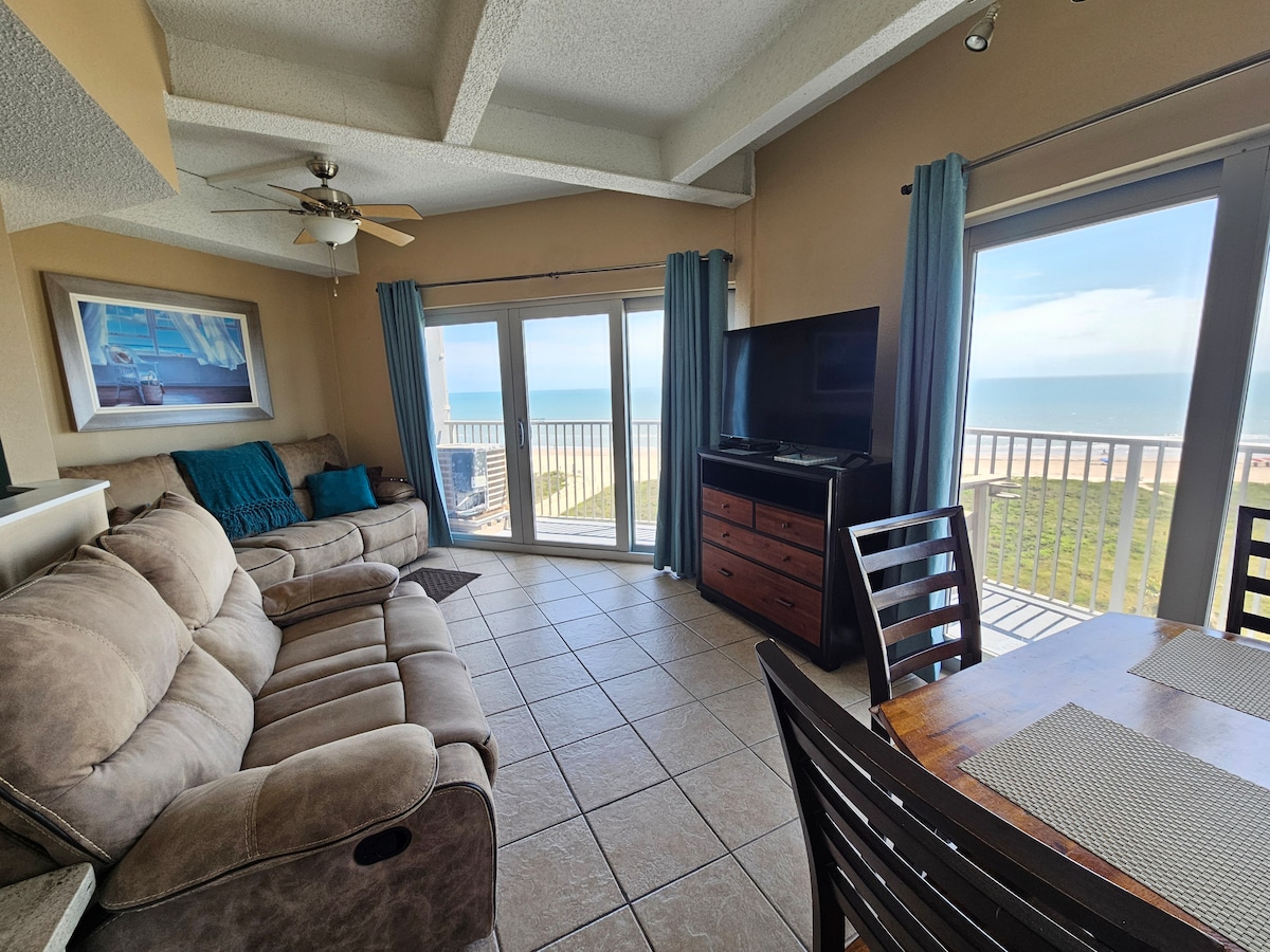 Spend your vacation in this beautiful corner Beach Front condo with spectacular views from the 4th floor overlooking the Gulf!! Recently remodeled with granite counters and fresh paint. Direct access to the beach, pool / hot tub. 1 bedroom plus bunk beds and queen sofa bed to accommodate up to 6 guests. Enjoy your mornings watching the sunrise. Fast WIFI and parking for our guests. BE ADVISED THE POOL WILL BE CLOSED OCTOBER 27 FOR ABOUT 45 DAYS! WILL BE NOISY OCT20 FOR spalling repairs