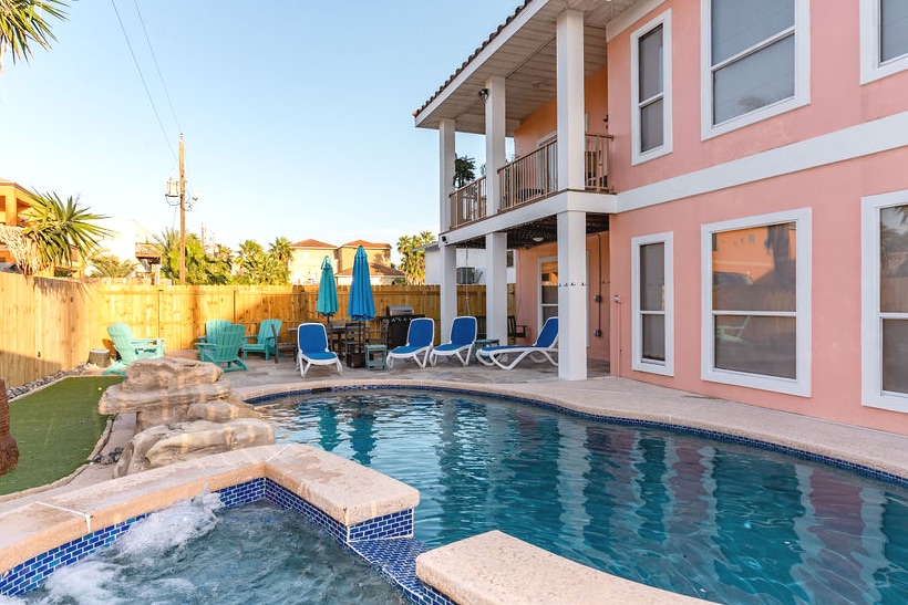 Welcome to your perfect private home on South Padre Island! Located just a block away from the beach/bay, our brand-new, modern-designed beach house offers the ultimate in luxury living for your island getaway. This stunning home boasts 3 bedrooms and 3 full-size bathrooms, providing ample space for up to 9 guests. The Jacuzzi pictured in the courtyard IS NOT available to guests.