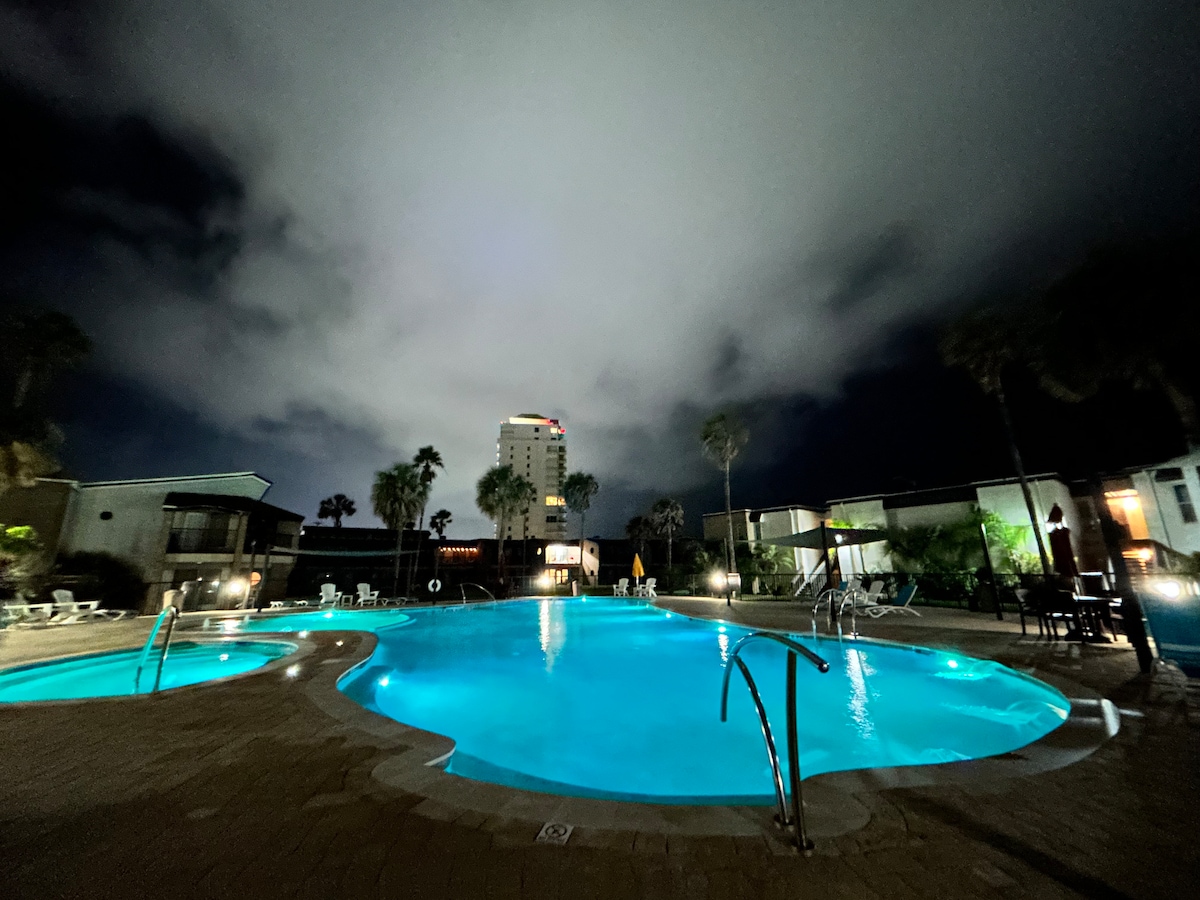 Welcome to Coral Cave Luxury Condo! Nearby South Padre's most fun activities such as Beach Park at Isla Blanca and the beach, this luxury condo is spacious, clean, private, & safe. Everything needed for a fun family getaway! Dive into relaxation with two full-sized swimming pool areas, equipped with BBQ grills and picnic tables across the complex. Take in stunning bayside views from the large terrace, the perfect spot to savor mesmerizing fireworks with your family. Your ideal retreat awaits!