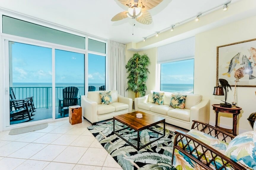 Gorgeous designer decorated beachfront Sapphire Luxury Condo rental with magnificent views of the Gulf of Mexico. Condo 1708 is your perfect luxury vacation getaway. Being on the 17th floor, the condo provides amazing views of the Gulf of Mexico, low enough to hear the ocean waves but high enough above the neighboring buildings to have miles of unobstructed view of the beautiful island beach both north and south as well as great Bay views of the fireworks shows and sunsets and Space X.