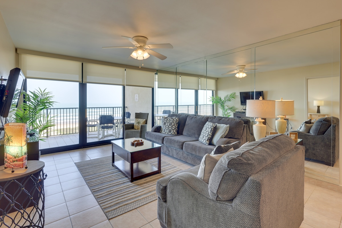 Recently renovated!! Savor the amazing views of the Gulf of Mexico from the 5th floor of this luxurious beachfront condominium. Everything in the condo is of superior quality and you will appreciate the attention paid to all of the smallest details. The decor is simple, comfortable, and modern. Downstairs enjoy a beach side pool, hot tubs, a fitness room, direct ocean access and walkway to the beach, picnic tables, bbq's, and coin operated laundry. NO PETS are allowed in the entire building.