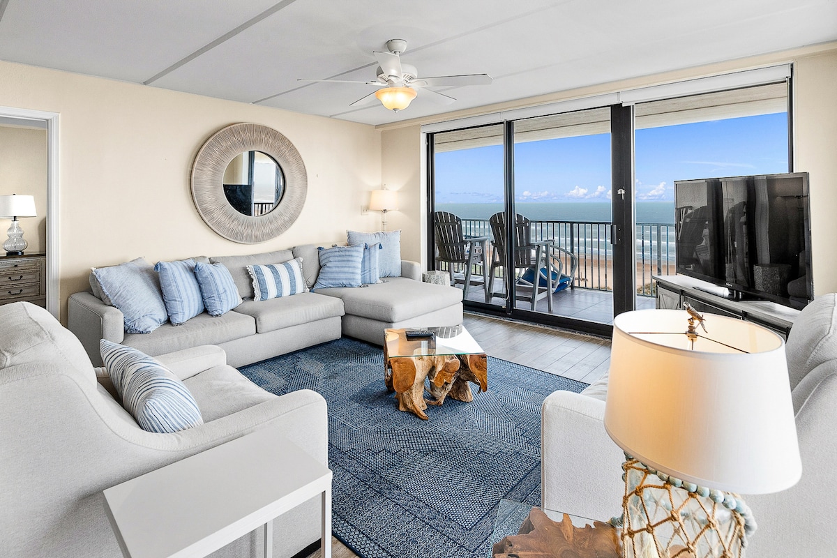 Wake up to the sound of waves and soak in stunning ocean views from this bright and breezy beachfront condo - perfect for a relaxing family getaway. Located just steps from the sand, this spacious condo offers everything you need for a memorable stay. Enjoy your morning coffee on the private balcony overlooking the beach, spend your afternoons by the pool, and wind down in a cozy family-friendly living space stocked with board games and streaming TV.