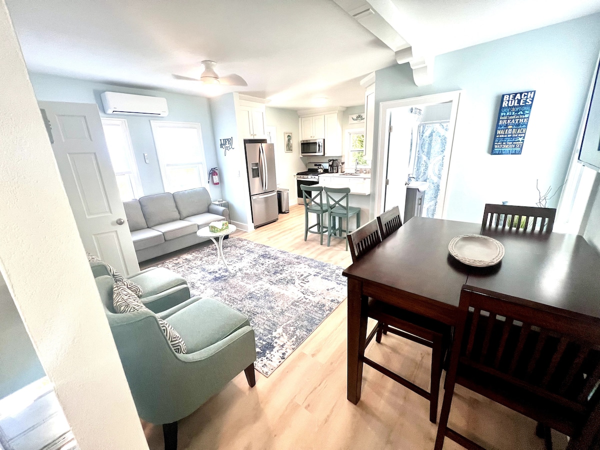 Cozy 2-bedroom beach cottage steps from Keansburg Beach and boardwalk. Enjoy ocean views, a private patio, Smart HDTV, fast WiFi, and a fully equipped kitchen. Both bedrooms have queen beds with blackout shades. Central AC, in-unit laundry, and a remote work desk included. Pet-friendly for small dogs under 40 lbs. Free parking. Walk to cafes, water park, and ferry to NYC. Perfect for couples, families, and digital nomads.