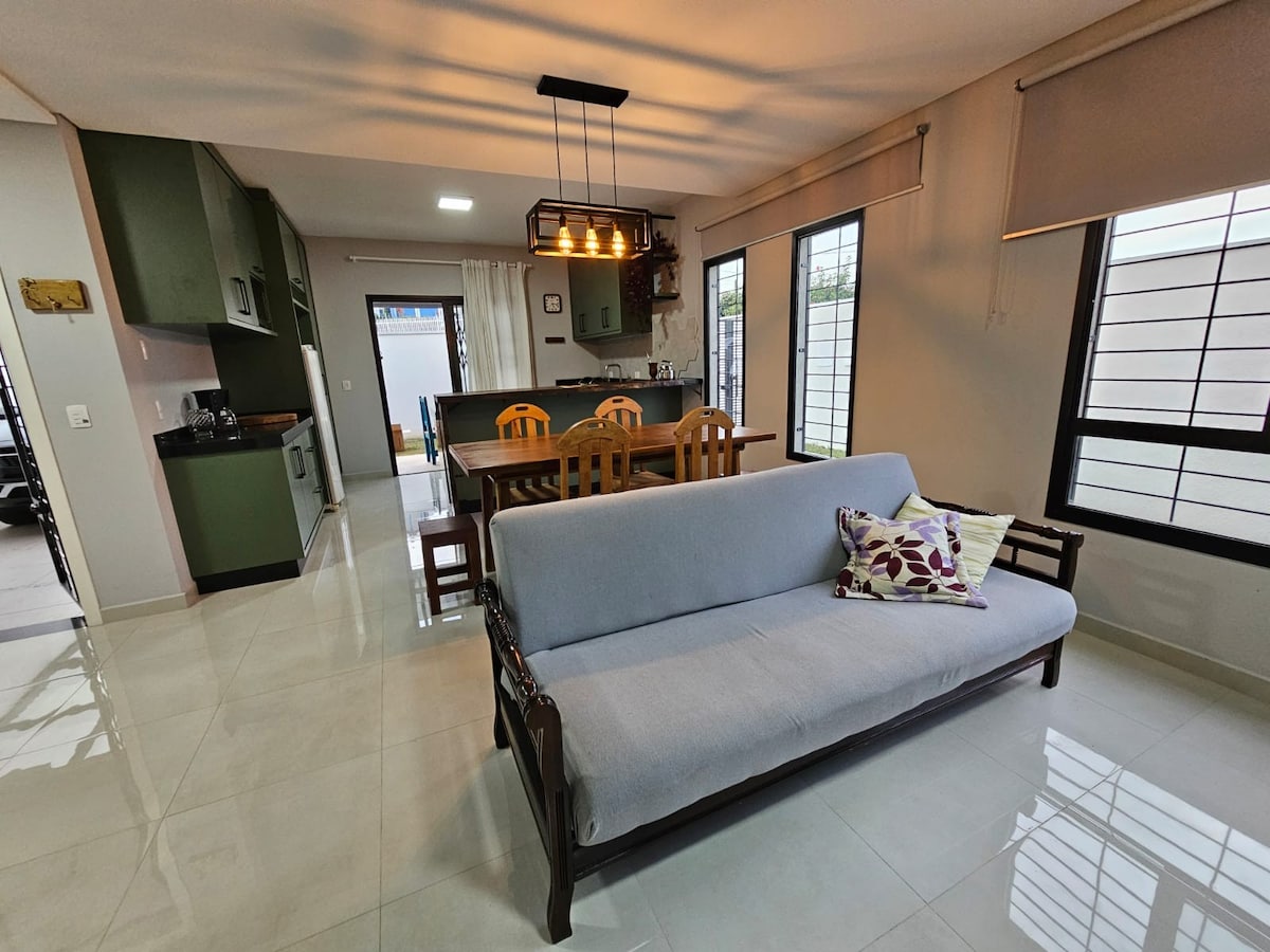 DISPONIBILIZAMOS GRATUITAMENTE - Wi-fi - Ar cond -Smart Tv - microondas - Forno elétrico - Cozinha completa todos utensílios - Roupa de cama travesseiros, cobertas, lencóis - Estacionamento Próprio -Câmeras de monitoramento externas COBRADO A PARTE Toalha de banho Disponível 3 tipos de café da manhã. Consultar valores conosco. Acomoda até 4 pessoas, mas não recomendado para crianças e bebês, pois está no 1º andar.Valores variam conforme quantidade de pessoas