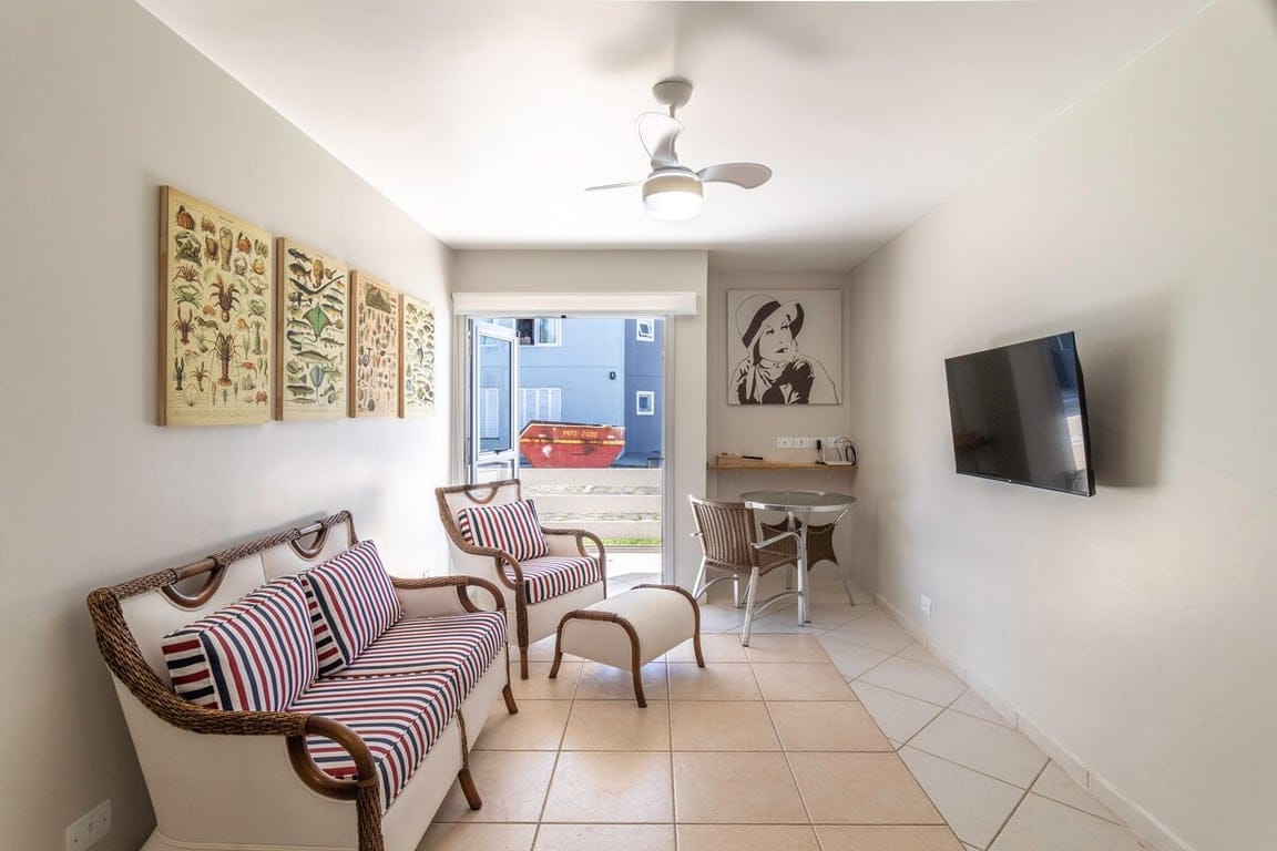 Enjoy this charming apartment in Bombinhas. You'll be in a beautiful resort condominium, with a unique pool that simulates an oasis!➢ Located on the Main Avenue, close to everything!➢ With a few steps, you'll already be standing on the sand➢ Enjoy our large balcony, with barbecue and pool view➢ All rooms have air-conditioning! Did you like it? Add to your wishlist by clicking ❤ on the upper right-