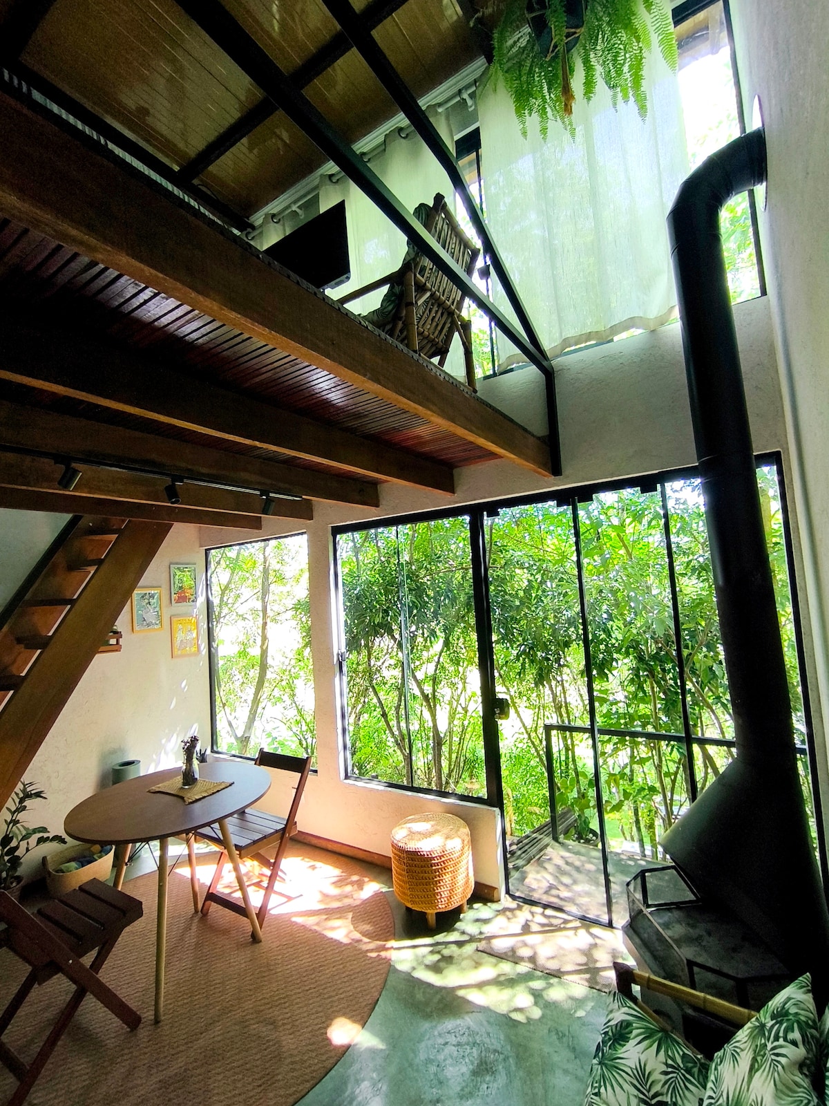 Uma hospedagem pensada e construída por mãos e corações. Amplas janelas de vidro proporcionam uma integração total com a natureza. Além de um bosque privativo com churrasqueira, redes, área de fogueira e um deck com banheira hidromassagem, a acomodação conta com sala, cozinha, banheiro com parede de vidro, cama de casal e espaço zen, TV Smart com Netflix e YouTube. Simplesmente perfeita! Mais que uma acomodação, ficar na Vibe é uma experiência difícil de explicar, mas muito fácil de sentir.