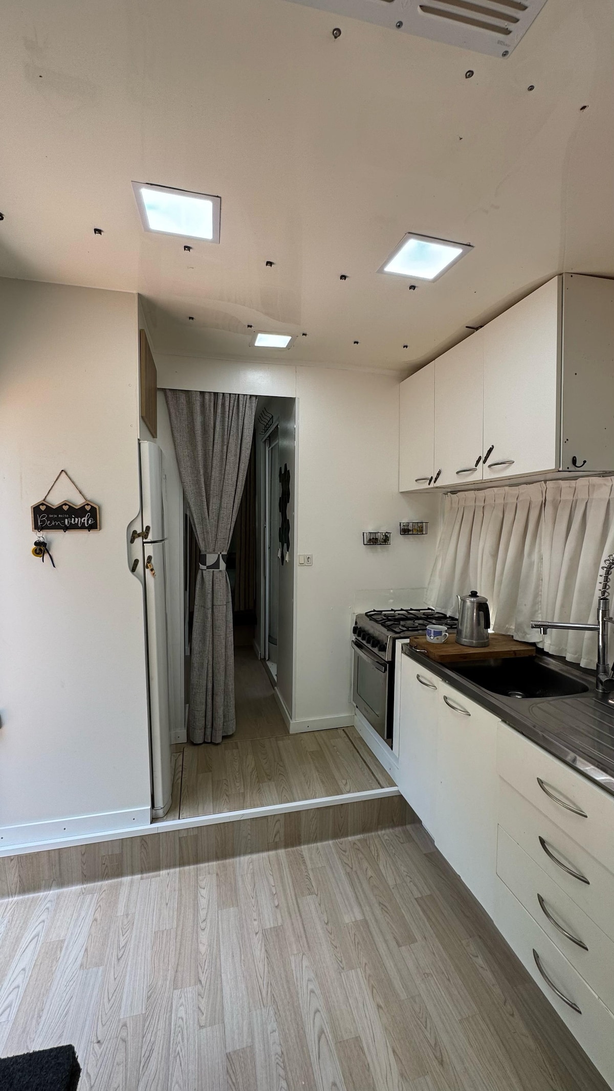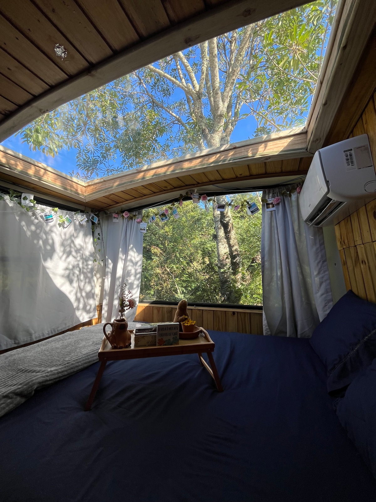 🌱 Hospede-se em um trailer de luxo totalmente equipado em meio à natureza! 🚐 ✅Cama de casal confortável, sofá-cama, ar-condicionado, TV, cozinha completa com utensílios, geladeira, micro-ondas e fogão. Banheiro privativo com aquecimento a gás e toalhas inclusas. 🔥Área externa com churrasqueira, kit praia e espaço para fogueira. 🧺Roupa de cama, produtos básicos e estacionamento inclusos. Um refúgio aconchegante, cercado por árvores e tranquilidade, pronto para você aproveitar.