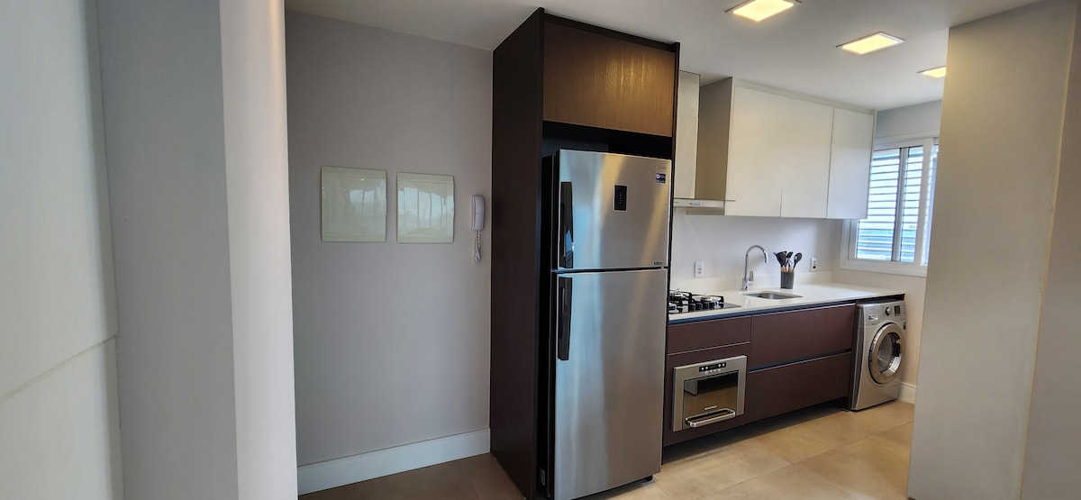Brand new studio 43sqm in TREND CITY, amazing panoramic view (16th floor) to Guaíba Lake, Lake Shore and Marinha Park, condominium with complete infrastructure, concierge 24h, parking space, gym, 20m heated pool. Queen size beds, space to work with laptop, hot and cold air-conditioning 24,000, Smart TV 50, cable TV NET HD with 250 channels, Wi-Fi 250 mbps, barbecue pit, wash and dryer machine, iron, hair dryer, microwave, airfryer, tag and electronic lock.