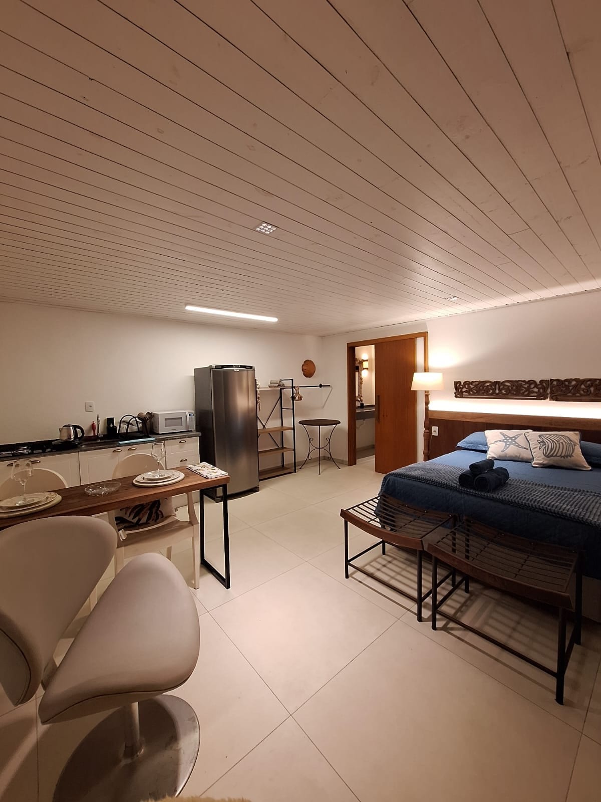Imóvel com pé direito alto e lindamente decorado para atender nossos hóspedes. É um estúdio amplo e confortável! 30 m2 bem iluminados e com comodidades. Fica nos fundos da residência dos proprietários porém com entrada independente. Localizado a 400 metros da praia dos Molhes e a 100 metros da Rota Gastronômica. Há utensílios para preparar pequenas refeições mas, caso prefira, os melhores restaurantes da cidade estão pertinhos! Padaria, super e pizzaria também podem ser encontrados na vizinhança