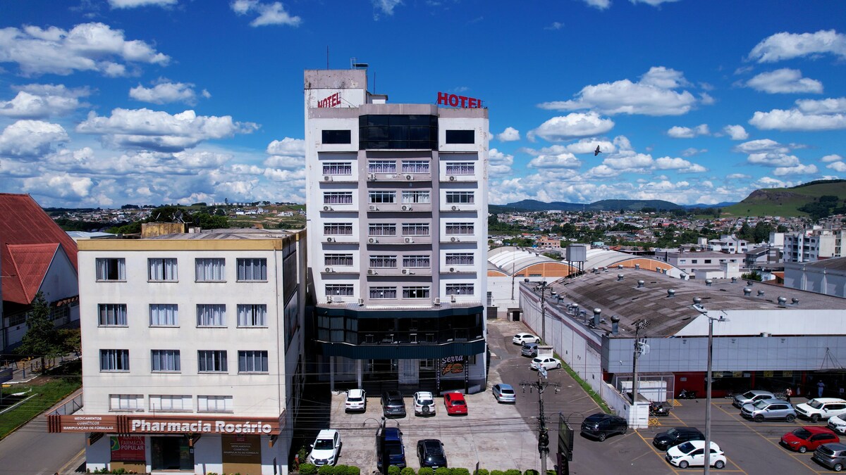 Quarto de hotel dentro do resort Wish Serrano, no centro de Gramado, em frente a rua torta. Acesso a toda estrutura do resort. Restaurantes, padarias, atrações turísticas do centro de Gramado a menos de 300 metros.