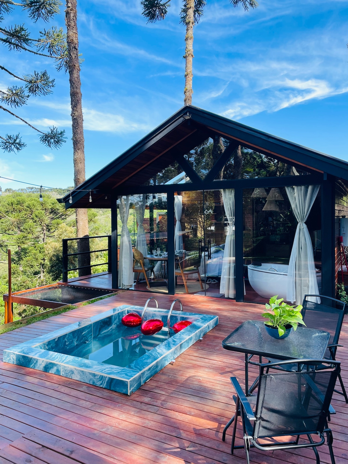 带按摩浴缸和恒温游泳池的小屋