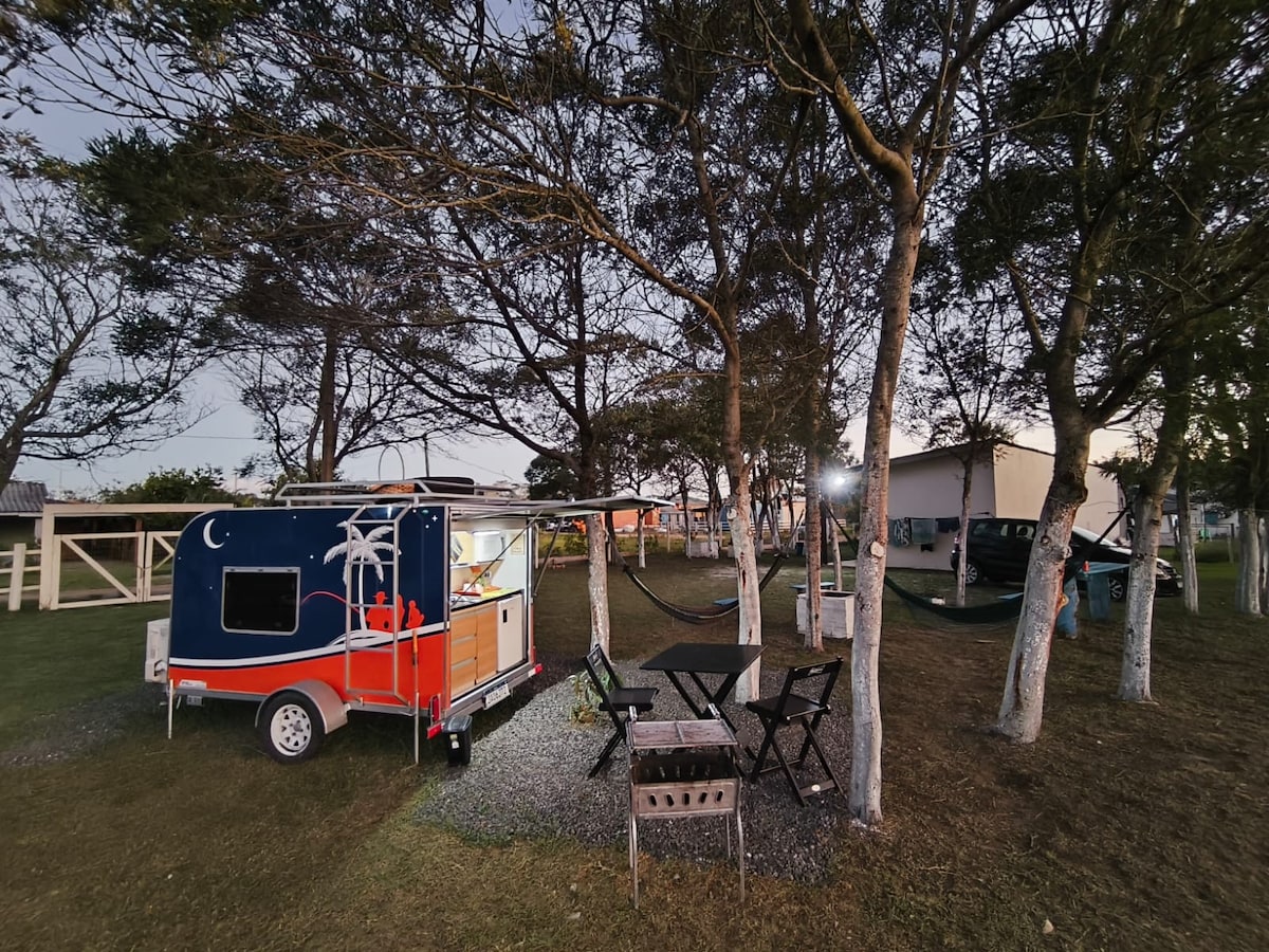 🌱 Hospede-se em um trailer de luxo totalmente equipado em meio à natureza! 🚐 ✅Cama de casal confortável, sofá-cama, ar-condicionado, TV, cozinha completa com utensílios, geladeira, micro-ondas e fogão. Banheiro privativo com aquecimento a gás e toalhas inclusas. 🔥Área externa com churrasqueira, kit praia e espaço para fogueira. 🧺Roupa de cama, produtos básicos e estacionamento inclusos. Um refúgio aconchegante, cercado por árvores e tranquilidade, pronto para você aproveitar.