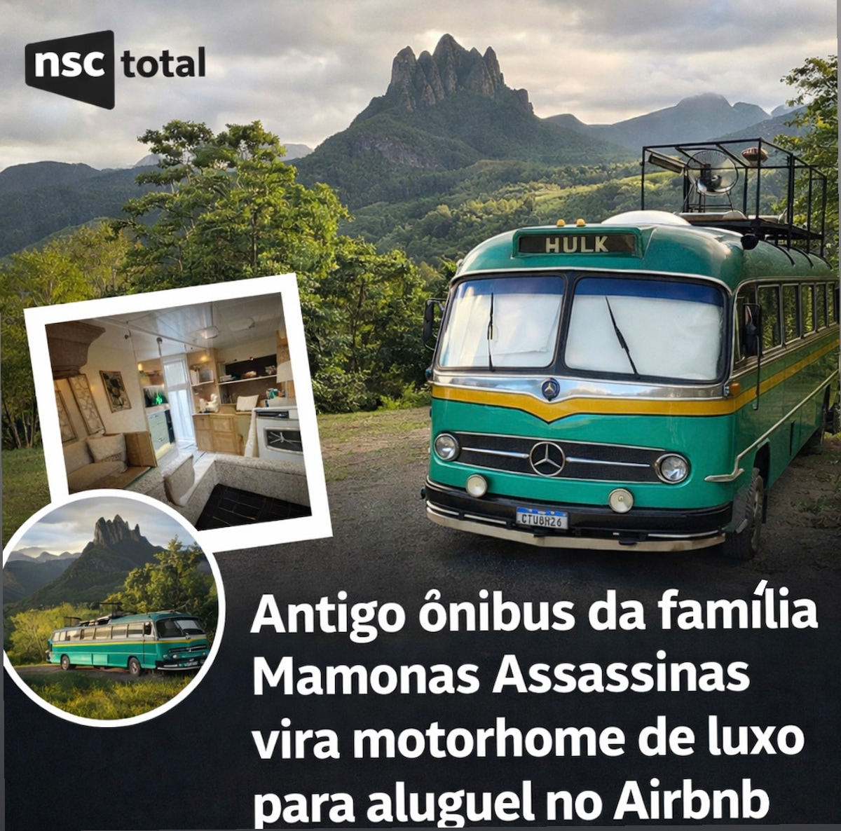 Já pensou dormir em um ônibus de luxo dos anos 60, com hidromassagem, banheiro espaçoso e boa internet? Aqui no Cânion Lajeado, com os Soldados Sebold ao fundo, isso é realidade! Curiosidade: o ônibus pertenceu à família dos Mamonas Assassinas e eles chegaram a tocar dentro dele! Por isso essa cor e energia únicas. Venha relaxar ao lado de um riacho cristalino e curtir trilhas incríveis pela serra. Fica em Alfredo Wagner, a 130 km de Floripa. Ideal para casal + 1 filho.