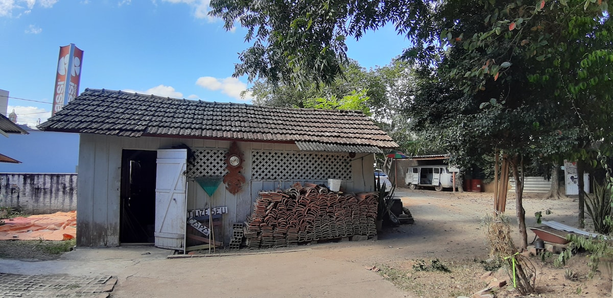 Espaço de lazer! Quiosque completo com piscina. Nosso espaço foi pensado para um dia de lazer em família ou amigos. No quiosque tem banheiro com chuveiro; Na área da cozinha tem a bancada com pia e fogão; Refrigerador e churrasqueira. Ficam disponíveis pratos, copos, talheres e espetos; A pátio é totalmente cercado, A piscina é aquecida por placas solares (sendo necessário sol para aquecê-la);