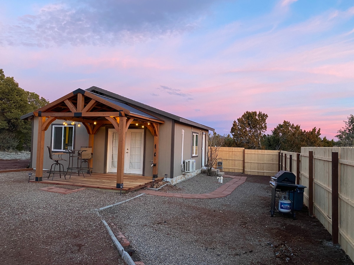 Keep warm this winter and enjoy indoor hot showers! Stay longer and save! Discounts added on your 2nd (+) nights through end of April! Discover comfort and serenity in our tiny house, just 30 minutes from the Grand Canyon entrance. Enjoy breathtaking sunrises over the mountains, stargaze without light pollution, and kick back in our 15-acre (6 ha) property. Perfect for nature lovers and adventurers, this off-grid gem offers modern amenities, cozy indoor living, and expansive outdoor space.