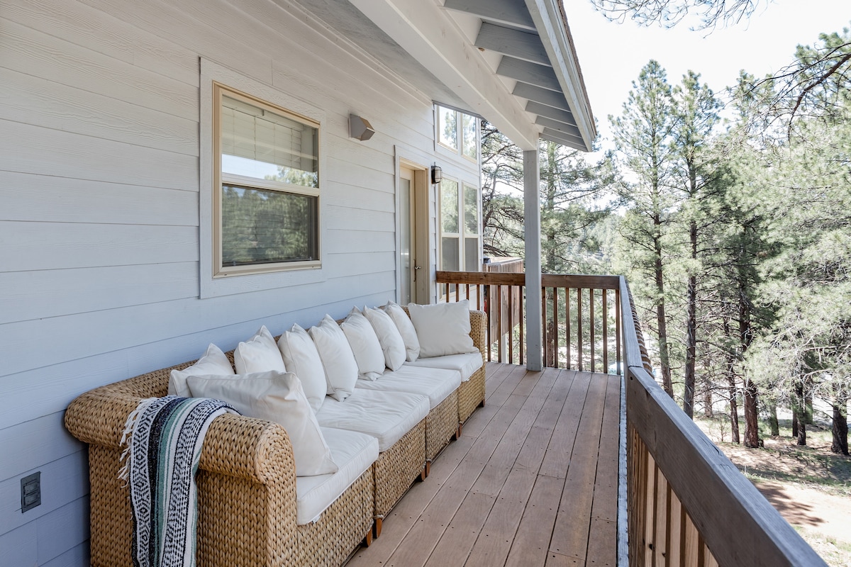 Enjoy this peaceful retreat with views of a mature forest and the San Francisco Peaks! Deer and elk graze across the ravine outside your bedroom window, and hummingbirds drink nectar from the abundant wildflowers. This is a really special spot! Still, our home sits inside Flagstaff, with all its amenities: cafes, roasteries, beer gardens, and breweries. Snow Bowl, Sedona, and the GC are not too far from us, along with many other day trip hikes and destinations. We love this place! Come join us!