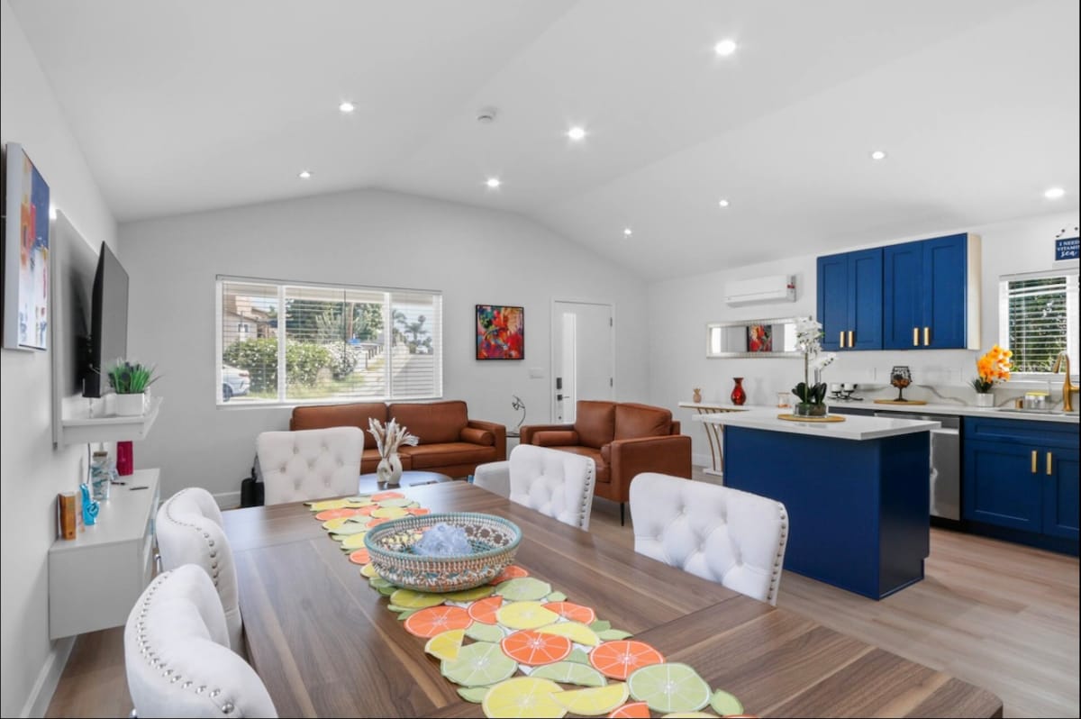 Experience all the delicious food Los Angeles & the San Gabriel Valley has to offer! Our 3-bedroom, 2-bathroom home boasts a spacious kitchen and chic & spacious living room with a deep West Elm leather sofa, 65" smart Roku TV, and dedicated workspace. Enjoy a game of shuffleboard or dinner overlooking the stunning views of the Mountains & Valley. Centrally located between Disneyland & Universal Studios and minutes from downtown, it's the perfect retreat to relax and unwind after adventuring!