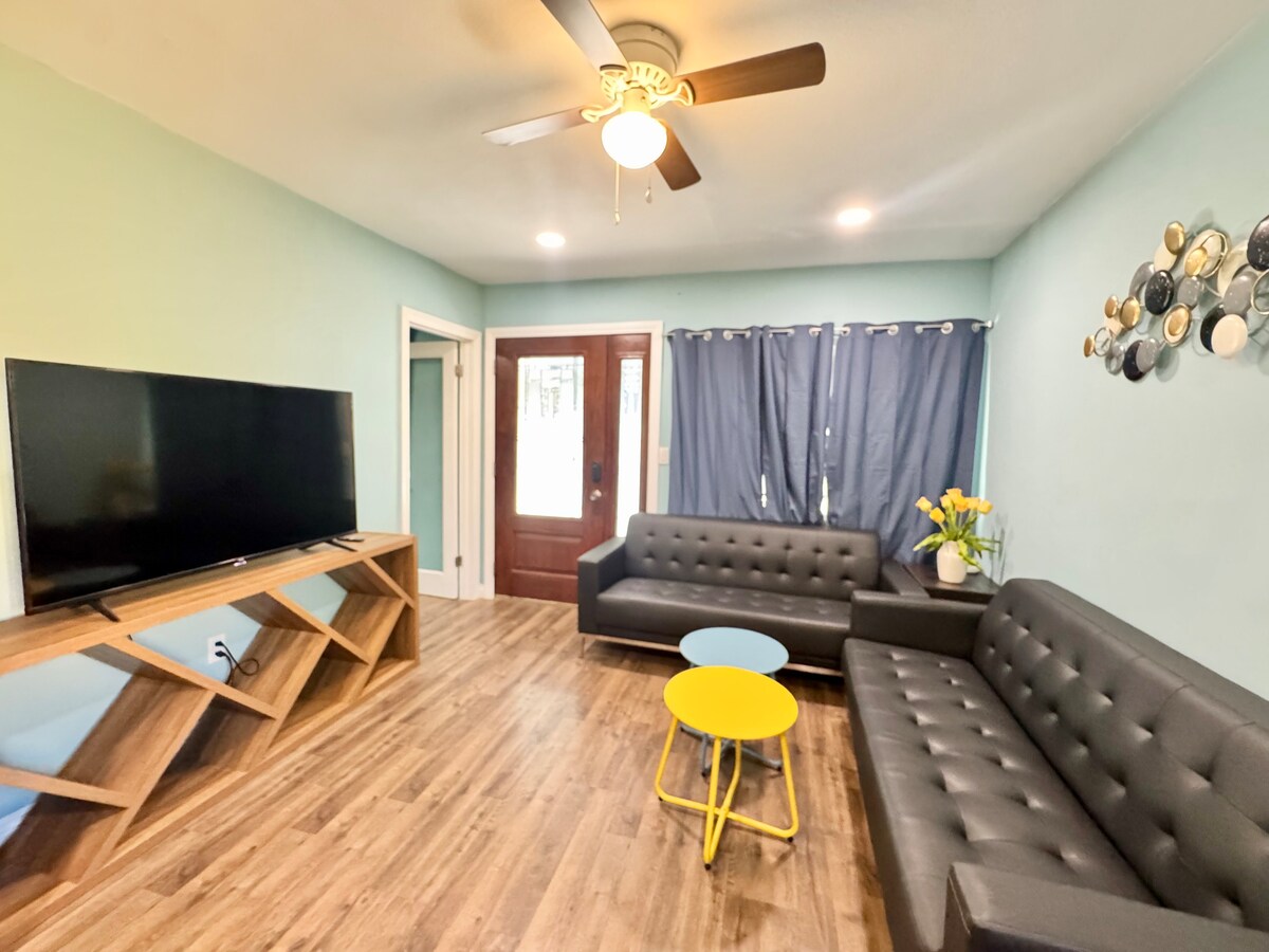 Welcome to your cozy retreat! This charming guest house apartment offers one bedroom with a comfortable bed, two convertible futons, and a well-appointed bathroom. Enjoy two television sets and a microwave oven for quick meals. With in-property parking, your vehicle is safe and accessible. Whether for a short getaway or an extended stay, our guest house is designed to make you feel right at home. Book your stay today and experience comfort and convenience!