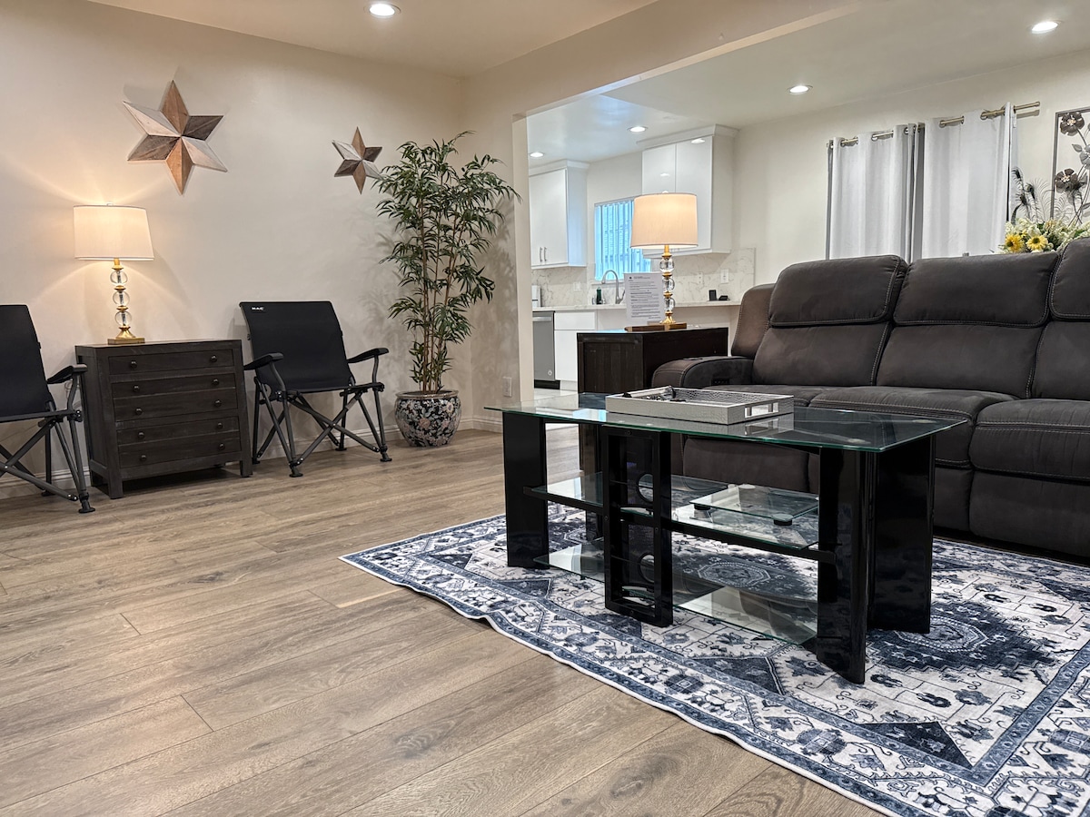 Experience comfort and style at this newly built East Los Angeles home, a tranquil escape at the center of the city. With major freeways nearby, minutes from Downtown, Silverlake, and the cultural pulse that defines LA. Skylights fill the space with soft natural light, creating a calm, airy atmosphere, with on-site parking and laundry for a seamless stay. Enjoy two inviting outdoor areas, a patio and a spacious backyard, perfect for dining, relaxing, and taking in lush greenery and city views.