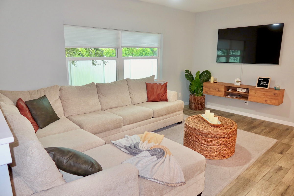 Ben's Bungalow is all about comfort and convenience. Just 3 miles and an 8 minute drive from Siesta Key Beach, it's the perfect home-base for your next Sarasota adventure and promises an unforgettable retreat for you and your crew. The large 3rd bedroom boasts an ultra-comfortable Nectar mattress and a 65” curved screen HDTV. Enjoy the Gigabit Wi-Fi, and the back-yard comes pre-stocked with fresh firewood, marshmallow sticks, and a privacy fence ready for you to make great memories with the fam.