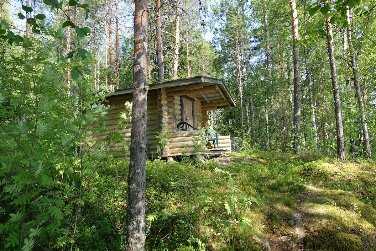 Pikkumökki-cottage is a cosy, traditional log cottage with a magnificent view over the lake Saimaa. The cottage has an open common area (livingroom and kitchenette) and a sleeping alcove. Sauna is in the same building with an own entrance. There is no shower, but you wash yourself with a refreshing lakewater. There is no watertoilet, but traditional dry eco toilet in a separate building. A big terrace and a grill for barbeque. There is a small bungalow next to the cottage, with beds for two.
