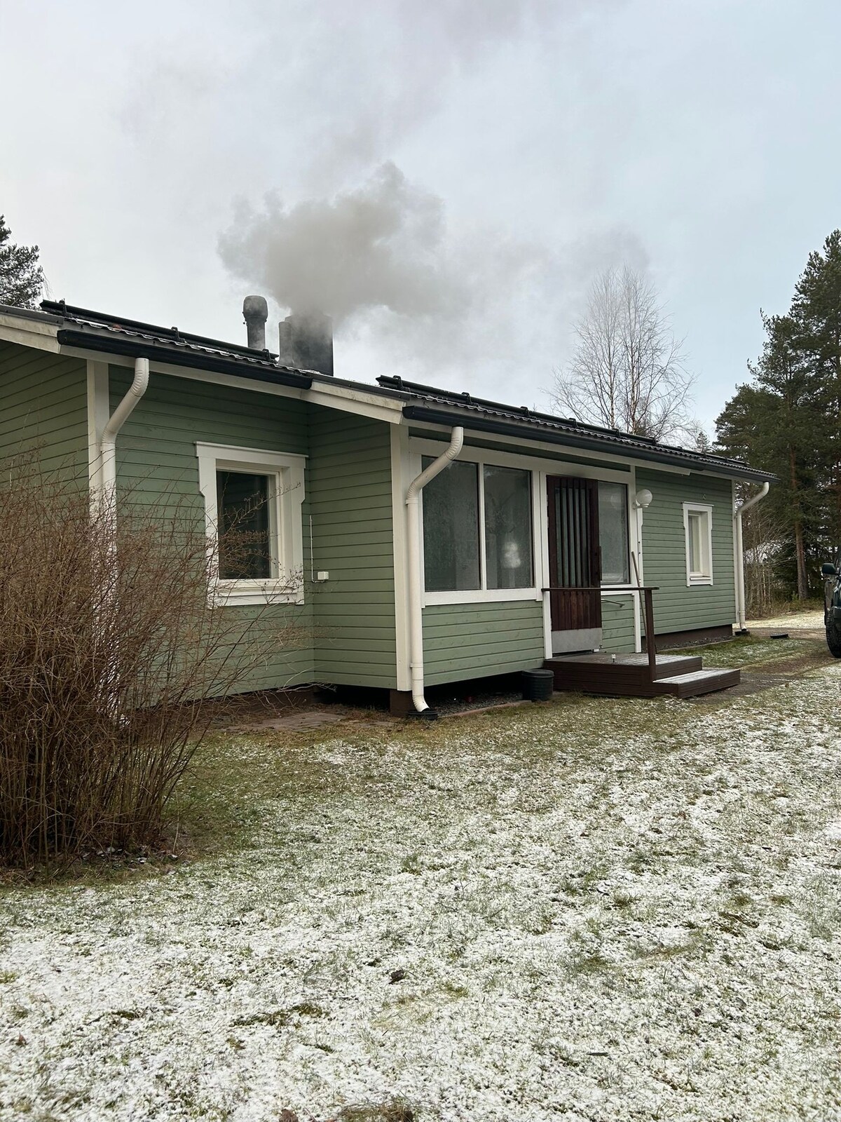 Апартамент является частью двухквартирного дома, имеет 1 спальню и гостиную совмещенную с кухней, террасу с мебелью для отдыха. Курение допускается только на террасе, в доме курить нельзя. На кухне есть все необходимое - плита, духовка, микроволновая печь, чайник, тостер, кофеварка, холодильник, полный набор посуды, посудомоечная машина. Для камина предоставляются дрова. Есть сауна и шкаф для сушки одежды. Постельное белье можно привезти с собой или взять в аренду. Цена 12 евро на человека.