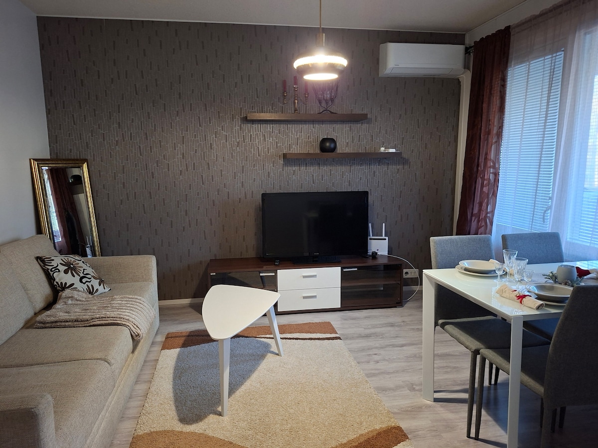 We have very good beds and you sleep well! Nighttime any noice. Very silence place. Have a good night and sweet dream! Every sheets and towels is ready on the beds. Here is big 55" smart-TV, free wifi and bluetooth music-player. Cross-country skiing possible because only 100m is forest and ski-road. You can rent equipment same house Superkirppis -second-hand -shop. Fitness equipment in the house. Prisma-Supermarket and restaurang 200m. WELCOME!