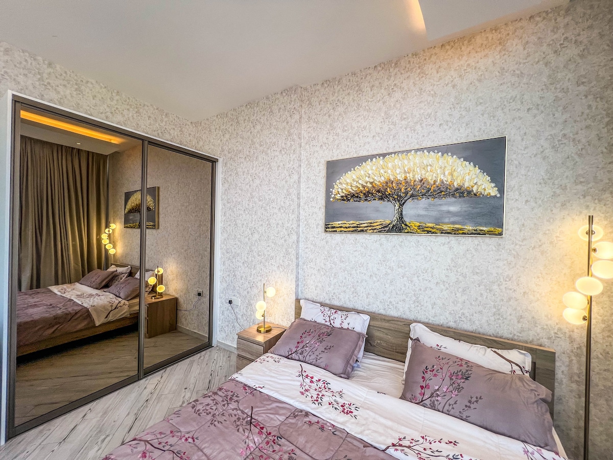 Kick back and relax in this cozy, stylish condo. The Condo 327 is a brand new sea + city view 1BR well-equipped apartment, with two private balconies w/outdoor swing, PS5, two smart TV’s (with Netflix), comfy feathered bedding, high-speed wifi, toiletries and fully-fitted kitchen on the 32nd floor of a gorgeous newly-built and secure building. Full access to all amenities; - Fitness center - Swimming pool - Sauna - Cinema - Squash court - 24/hr security.