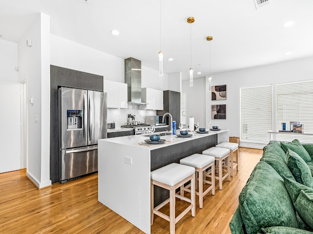 Experience the best of city living in our modern minimalist retreat! Pets Stay Free Enjoy breathtaking views of the city skyline from the comfort of our sleek and stylish high-rise apartment. Located in the heart of downtown, you'll be steps away from top attractions, trendy restaurants, and vibrant bars. Our apt. is the perfect haven for couples, solo travelers, and business professionals seeking a stylish and convenient base for their city adventures.