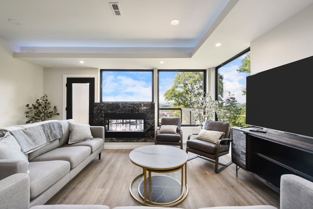 Experience unparalleled luxury in this spacious 5-bedroom, 3.5-bathroom haven, perfectly situated in the heart of Pittsburgh. Boasting not one, but two roof decks, you'll have the finest city vistas right at your fingertips. Relax by the indoor-outdoor gas fireplace this is a serene escape amidst the urban hustle. With the addition of garage parking for 1 vehicle + Parking pad directly in front of the garage door, your downtown retreat combines modern elegance with supreme comfort, promising a m