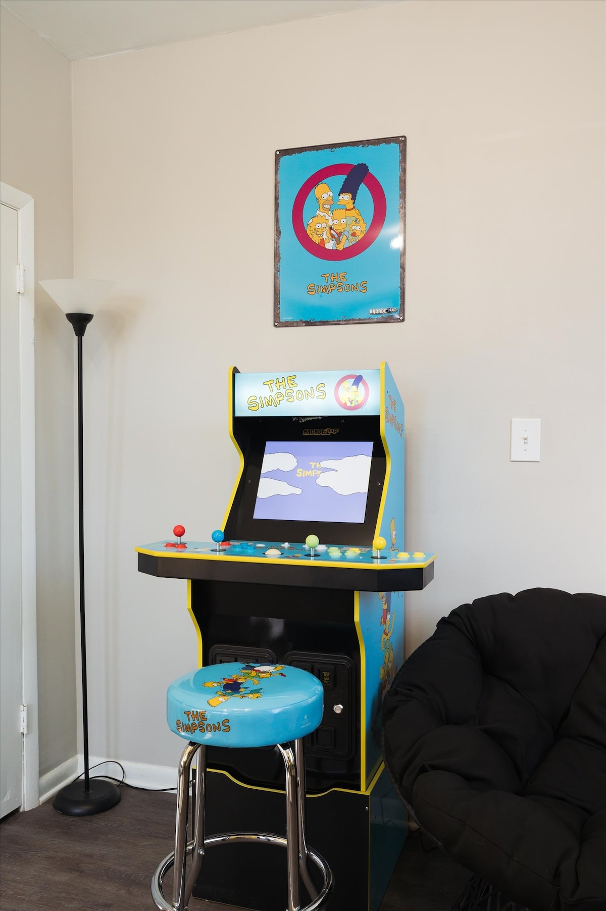 Cute 700 sqft 2BR 1BA located 10-15 min drive from Downtown Chicago! Tub/Shower + smart speaker Games for adults & kids, 3 Smart TVs, free wifi| , office desk Classic Simpsons Arcade Sleeps 4-6 comfortably, 1 queen bed, 1 full bed, 1 sleeper sofa, 1 air mattress Free street parking Walking distance from public transportation 3 miles from Little Italy, Chinatown, and Downtown 15 min drive from Millenium Park and Soldier Field Minutes from Sox Park Great for families, professionals, and travelers