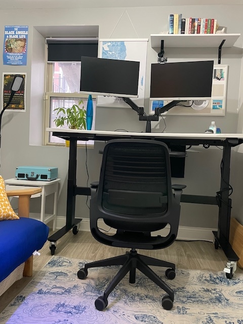 Next to University of Chicago campus. Private entry to 2-bedroom/1.5-bath apartment: back half is our separate craft space and front half is your private Airbnb suite. No proper kitchen, but there is a large fridge, microwave, etc. This Airbnb is in our 4-unit apt building next to our house where we've had a 5-star Airbnb room for 10+ years as a Super Host. The other tenants are long-term lease-holders and wonderful people whom we're happy to call our neighbors on this quiet tree-lined street.