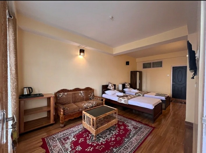 A spacious 3 BHK Serviced Apartment located in the centre of Gangtok town (200m from Mg Marg) showcasing a panoramic view of Gangtok. The property has a breath taking view of Mt. Kanchenjunga and Ranka valley. A mix of traditional & contemporary interior gives you a clam, homely and cozy vibe. Although it is located just 200m from the heart of town, the property is situated on the top 5th floor of the building. Therefore, the guests are required to walk up a bit from the main road.