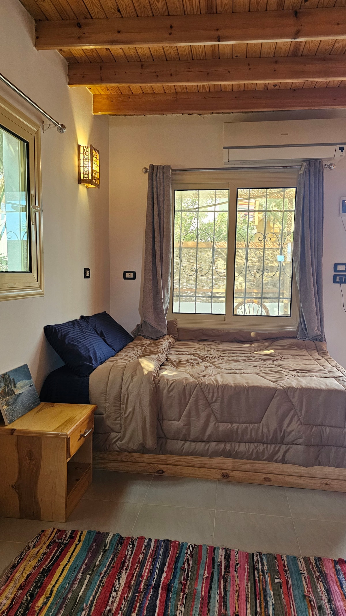 This cozy apartment is located in Eel Garden area 1mins walk to the beach A beautiful bedroom with air conditioning & big window looking over the garden and the palms living room space with sofa & Fully equipped kitchen colorful and modern bathroom huge comfy shared garden full of palms and tree, sea view roof top to enjoy and relax during the day or in the evening to watch the stars, close to everything you will need in dahab yet its very quiet area offering all my guest relaxing holiday.