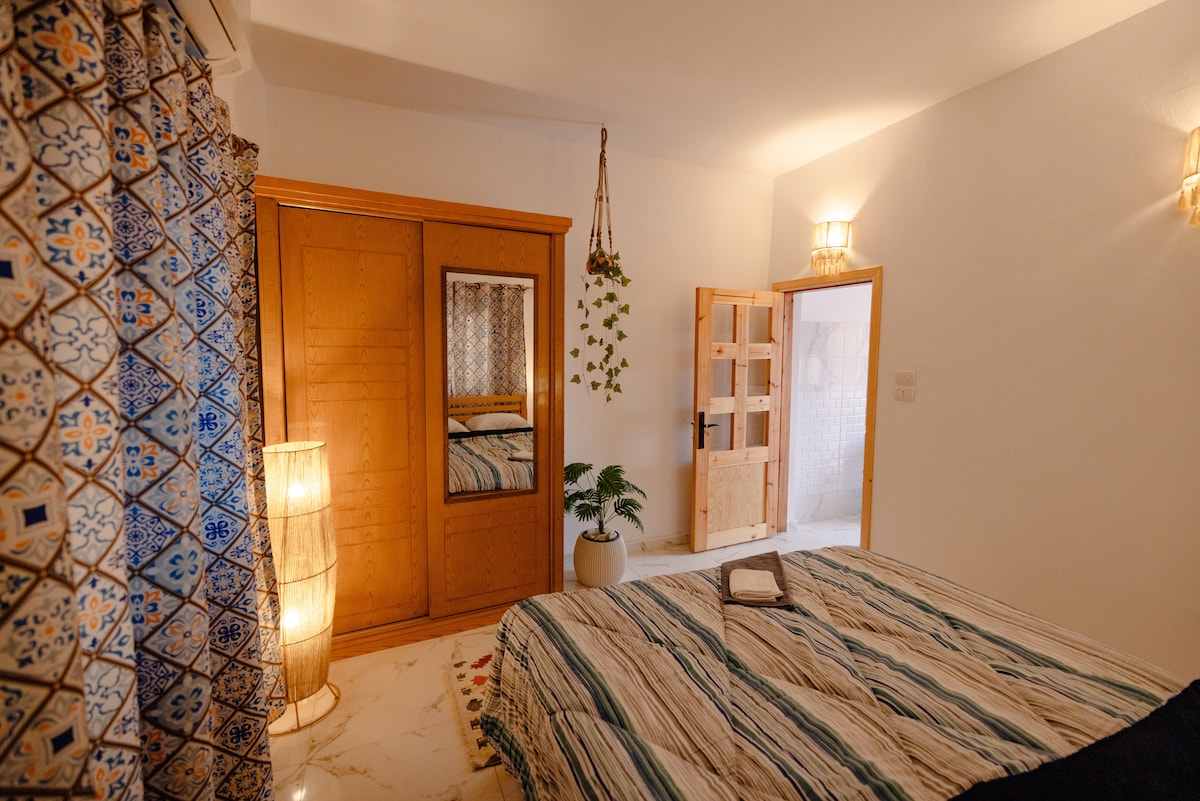 Enjoy the cozy peaceful artistic seaview home. You will have the purest water in Dahab to drink from. You will have access to two of our bicycles. We have the most peaceful and beautiful view of mountains meet sea. A giant roof seating area to enjoy the nice breath, and the only place you can see the sunrise and sunset. You will have access to NardeenArtista private collection of art work and paintings. Please read all the rules and information prior to booking.