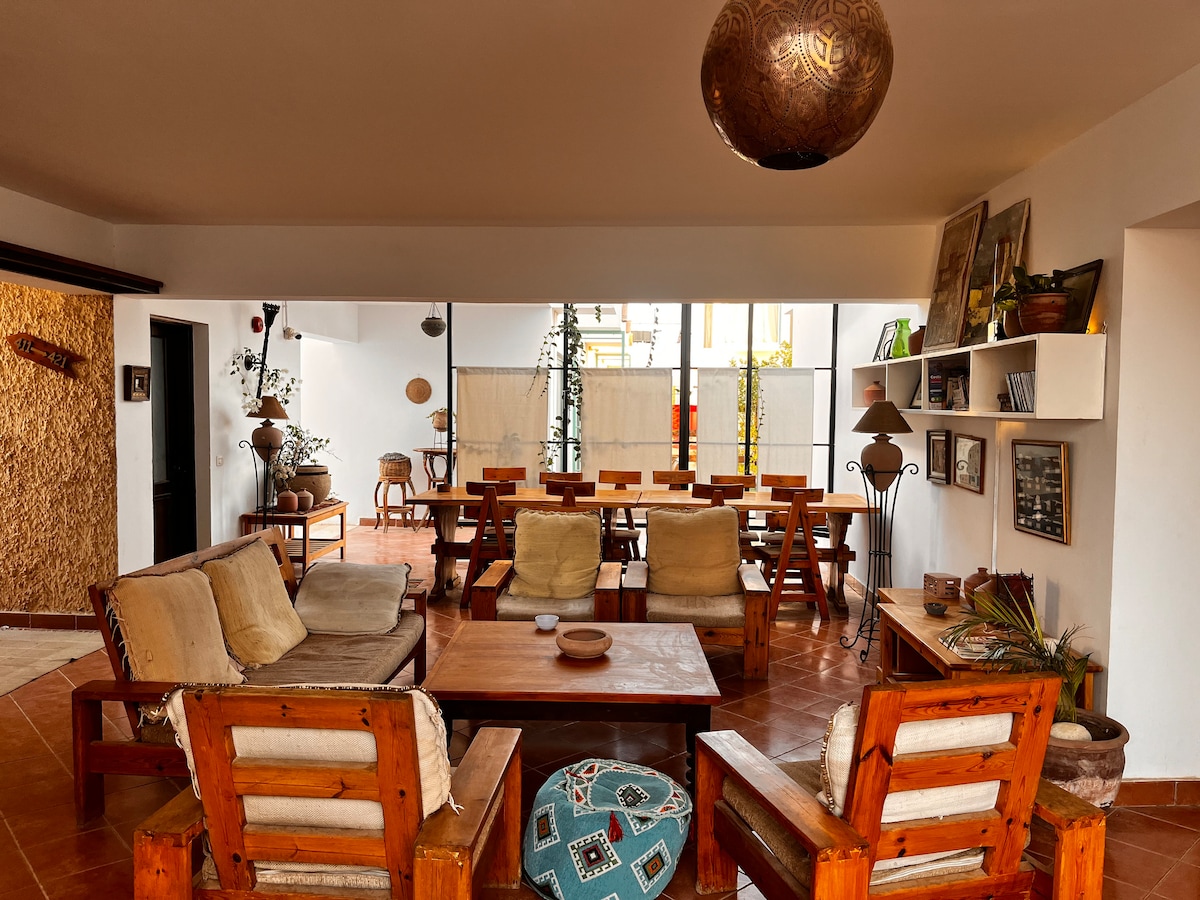 Sheikh Salem House (Guest House) is a select and recently renovated (2018) Boutique Residence located in the enchanting village of Dahab, South Sinai, Egypt. All 9 rooms are individually themed / named after famous locations in the South Sinai. This residence offers a unique setting on a private un-spoilt sandy beach with magnificent views of the Gulf of Aqaba and the mystical Mountains of Sinai.
