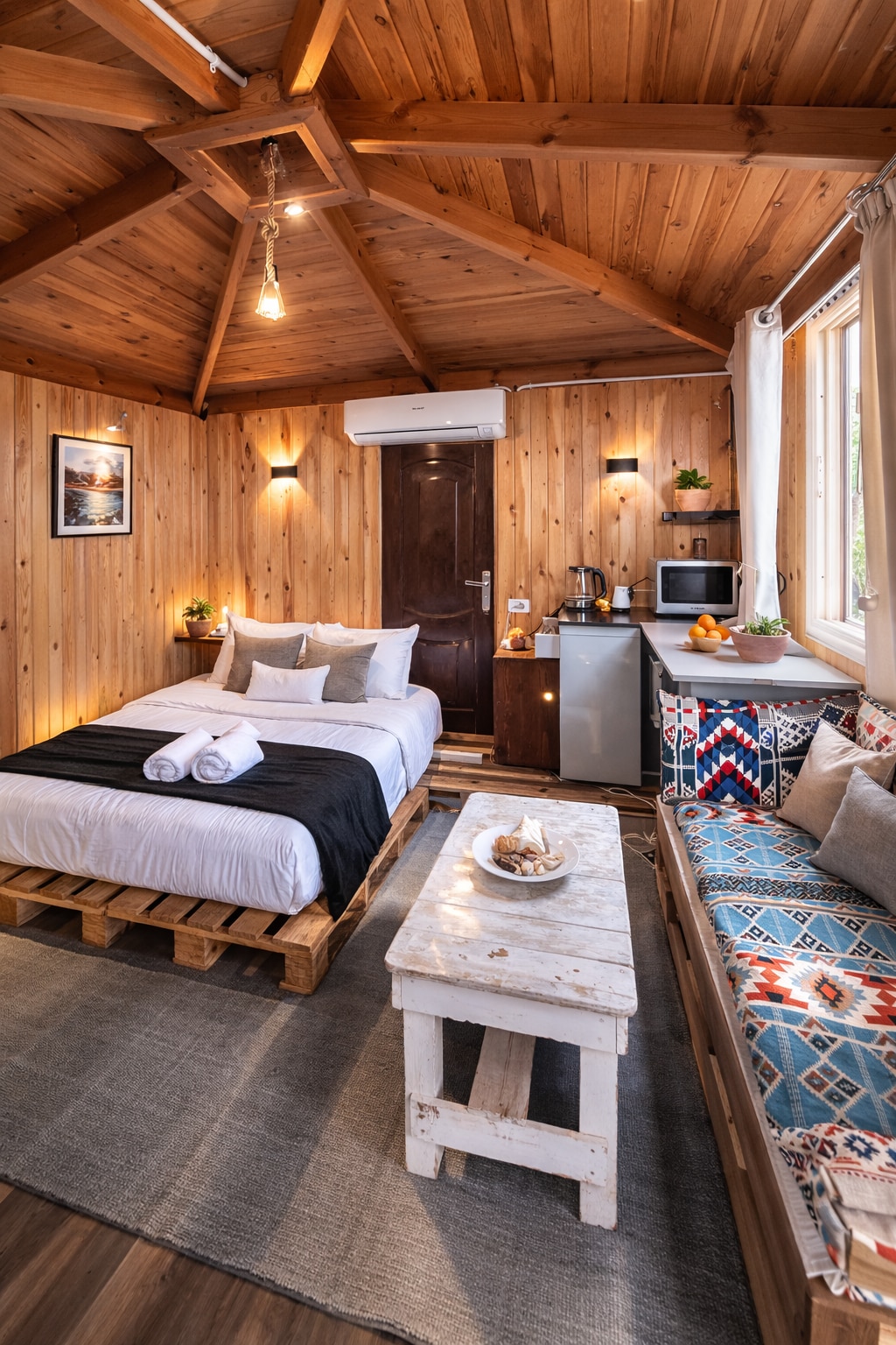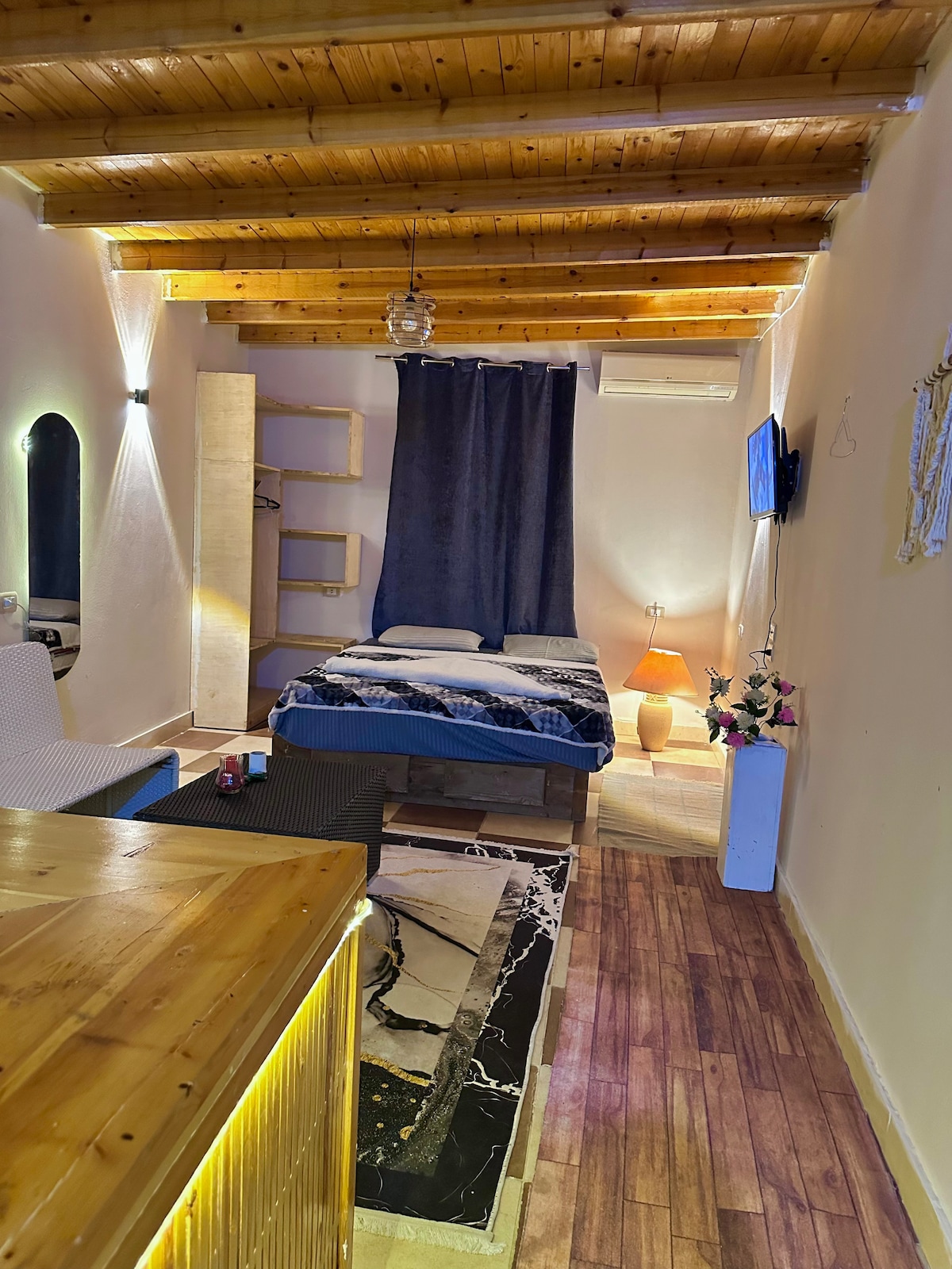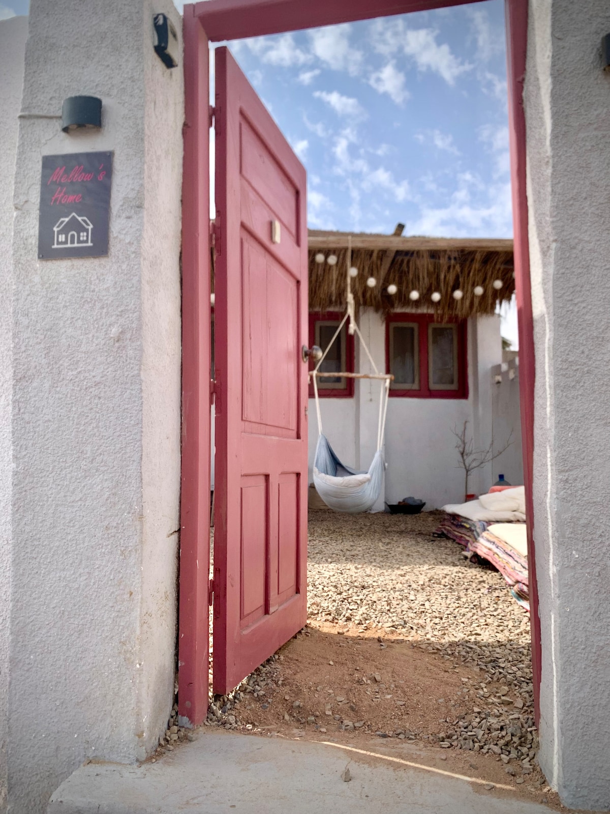 Tucked away in a quiet local neighborhood, this hidden Dahab gem offers comfort and privacy with a true sense of retreat, while still being only an 8-minute walk from the lively Lighthouse area and the beach. Wake to the sound of roosters and enjoy your morning coffee in the garden. At sunset, head up to the rooftop for sweeping views of Sinai’s changing colors, then end the evening around the peaceful garden fire under a sky full of stars, with the city glowing in the distance.