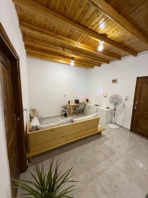 Cozy one-bedroom villa just four minutes from Farsha Coffee and five minutes from the beach. Located in a peaceful area, perfect for relaxing and experiencing local life. Ideal for two guests, with a fully equipped kitchen, air conditioning, and a comfortable lounge area. Security cameras provide added peace of mind. A private, quiet retreat close to beaches, cafés, and local markets—your perfect base to relax or explore.