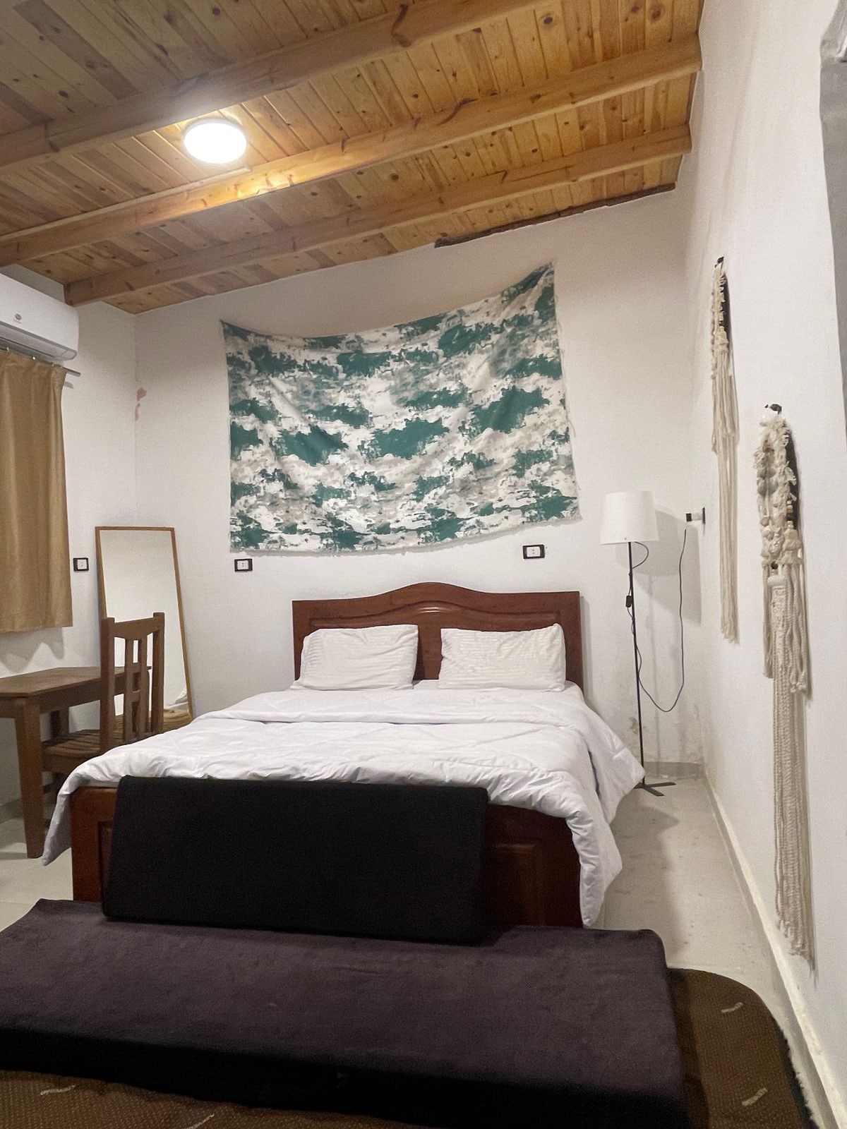 An homage to the raw yet charming essence of Dahab, this house captures the town’s untamed beauty and quiet warmth. Nestled in a local neighborhood with a rural vibe, it offers a sense of retreat while being just a 7-minute walk from the buzzy energy of the Lighthouse area and the beach. Begin your day with rooster calls and morning coffee in the shaded garden, and end it on the rooftop watching Sinai’s sunset before gathering by a quiet garden fire under the stars.
