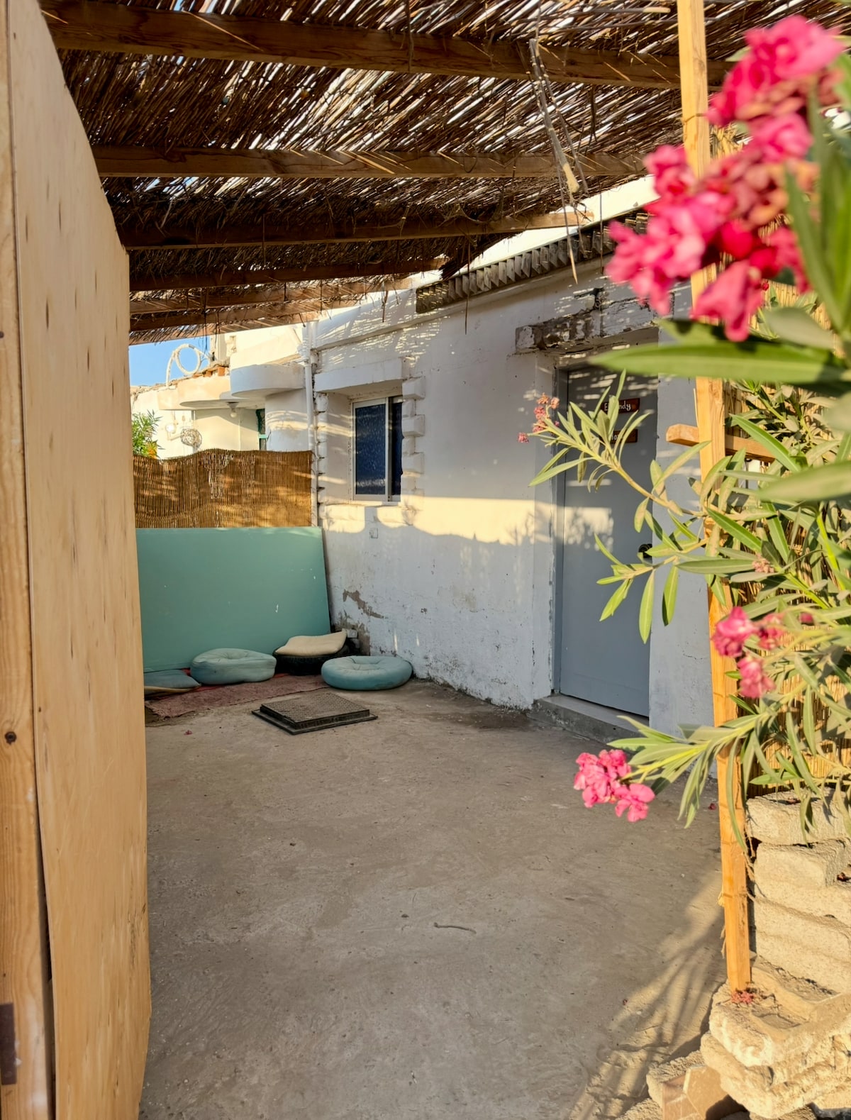 Experience Dahab’s boho lifestyle at Cozy Cushion Cove! This sun-drenched home is perfect for digital nomads & groups. Relax on the window seat, stream TV, or cook in the fully equipped kitchen. We offer luxury where it counts, like fast Wi-Fi & premium bedding, making it perfect for remote work. Unbeatable walkable location: 4 mins to Assala Square (cafes/shops), 7 mins to the Red Sea beach & 10 mins to Lighthouse dive sites. The perfect slow travel base for your Egyptian holiday escape!