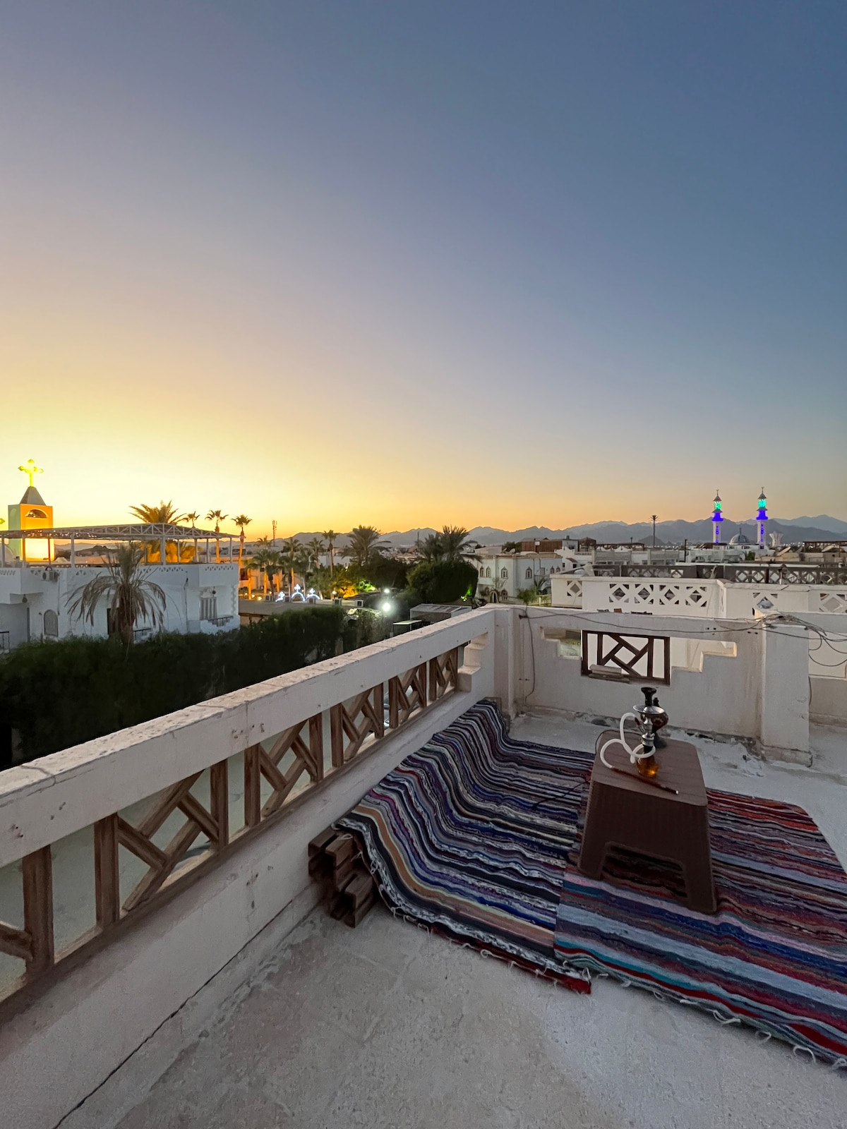 Enjoy a spacious rooftop apartment in Dahab’s El Garden area, just a one-minute walk to the beach and promenade. This second-floor unit features a large private terrace, perfect for relaxing and enjoying fresh air. The apartment includes two comfortable bedrooms, 3 Air conditioning ,a modern spacious bathroom, and a fully equipped kitchen. Ideal for up to six guests, it offers comfort, privacy, and a great location near cafes, restaurants, and local shops.