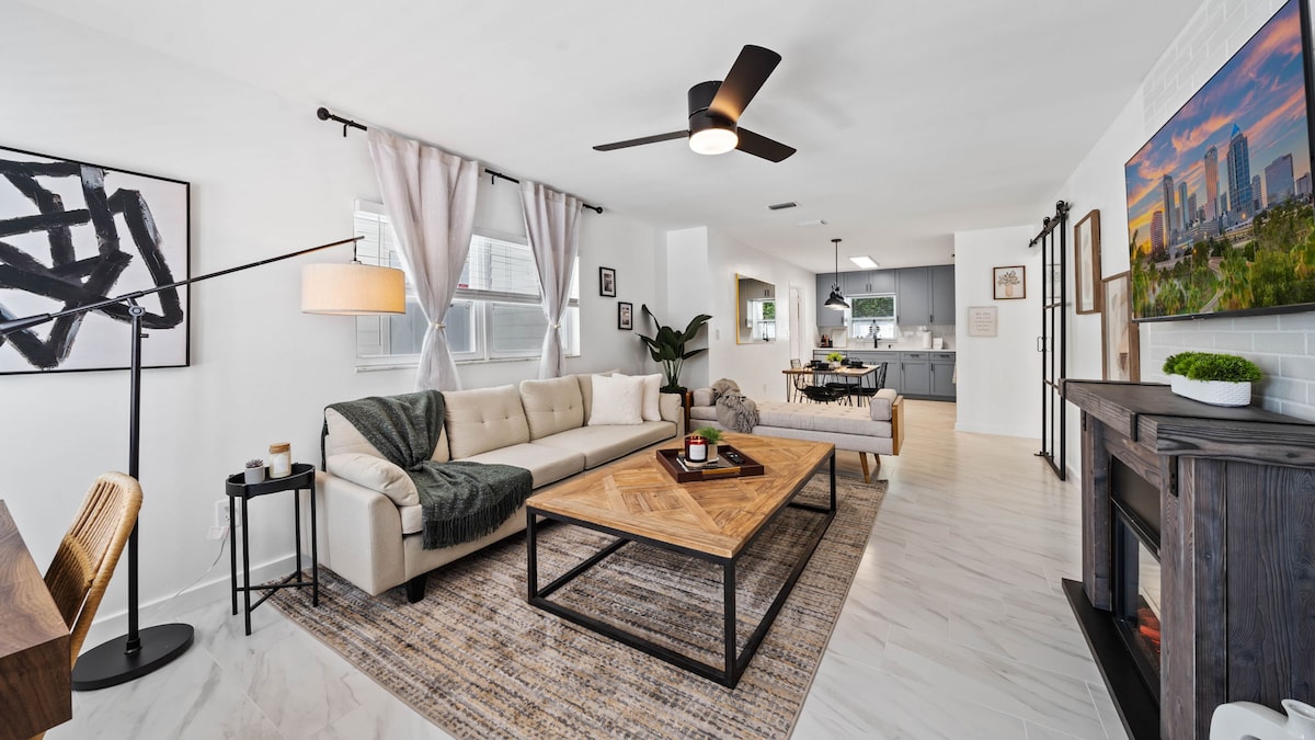 Centrally located, safe & desirable neighborhood by Hillsborough River. Corner lot, Free covered parking, easy self checkin, Bohemian style decor & vibe, stocked kitchen, SMART TVs, Laundry Rm, Fireplace. Outside Fire Pit, Picnic Table w/BBQ Grill, Hammock. Close to Lowry Park Zoo, Downtown/Convention Center, Riverwalk, Armature Works, Ybor City, Busch Gardens, Hyde Pk, Midtown, Airport, Beaches & More. Perfect for Vacation, Romantic Getaways, Family Visits, Concerts, Hockey/Football, & Work.
