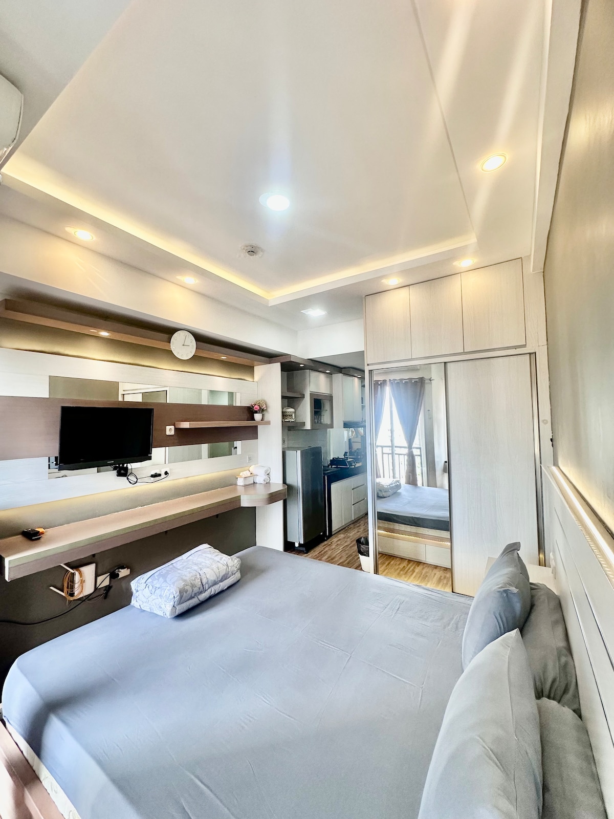 A compact studio apartment, presented with neat kitchen and wrapped in quality bedding will ensure a memorable stay to be repeated. Great for a couple or single professional. Guests from any background is welcome in our home. Paid parking available. Guests will have full access to the gym and pool. Choice of food vendors are located conveniently around the apartment.