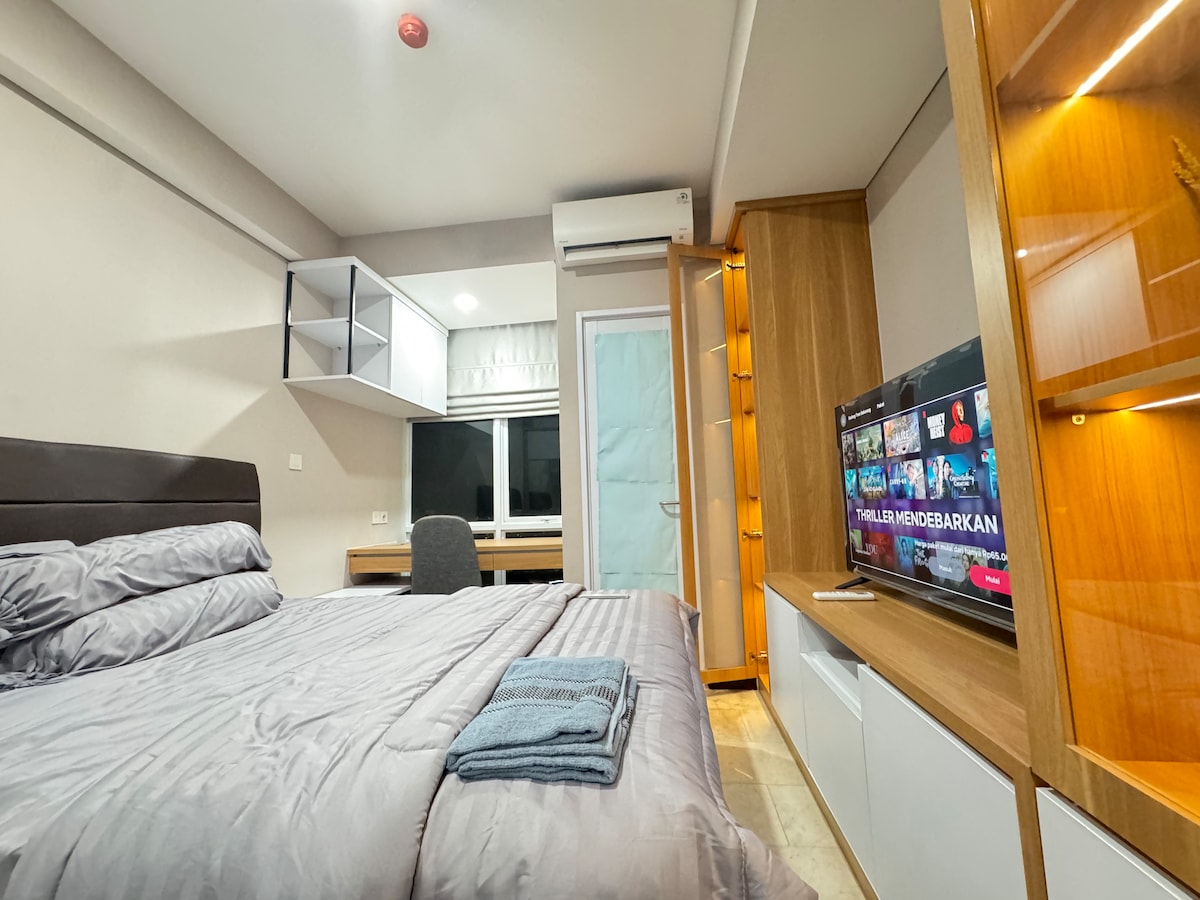 MODERN ELEGANT FULL FURNISHED APARTMENT AT B-RESIDENCE BSD 5 MINUTE TO ICE BSD 7 MINUTE TO AEON BSD The space : - 1 Bedroom with 160x200 bed sizes - air conditioners - living room with 55 inch smart tv (FREE NETFLIX) - 2 towel, shampoo , body shower - dining table - Free 2 mineral water - FREE 24 hours High speed internet access
