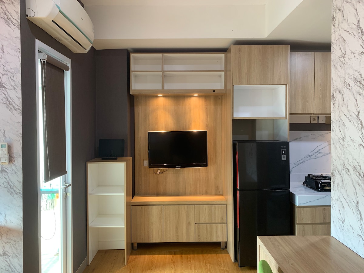Welcome to our cozy ✨2-bedroom apartment ✨ nestled in the heart of BSD City. Perfect for families or small groups, our space offers a comfortable and inviting atmosphere for your stay. As you enter, you'll be greeted by a spacious living room featuring modern furnishings and plenty of natural light. The fully equipped kitchen is ideal for preparing delicious meals, with a dining area where you can enjoy them together. We look forward to hosting you and ensuring you have a memorable stay!