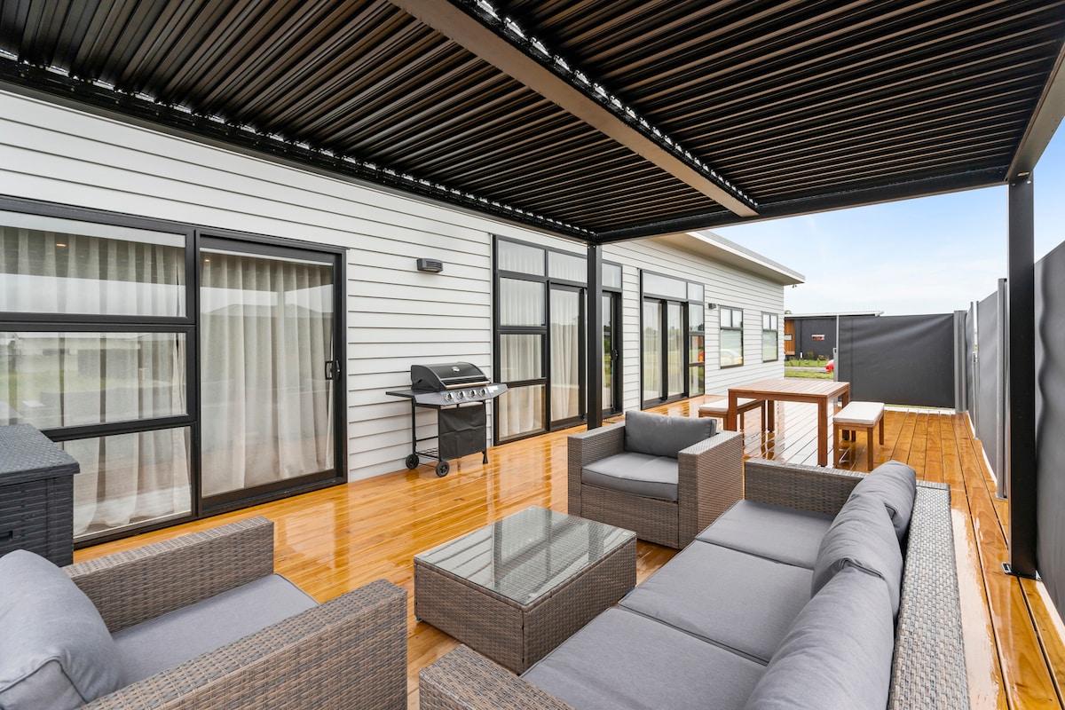 Wanting a relaxing break away? Look no further than this rural retreat. Situated only 10 mins from Martinborough Square you will find a modern 4 bedroom house with expansive rural views. Have fun swimming in the large outdoor pool (Summer only) or relax in the comfortable outdoor furniture. Enjoy al fresco dining and savour a glass of wine watching the beautiful sunsets. Delight in gazing at the magnificent night sky from the large spa pool. Plenty to see and do with local wineries nearby.
