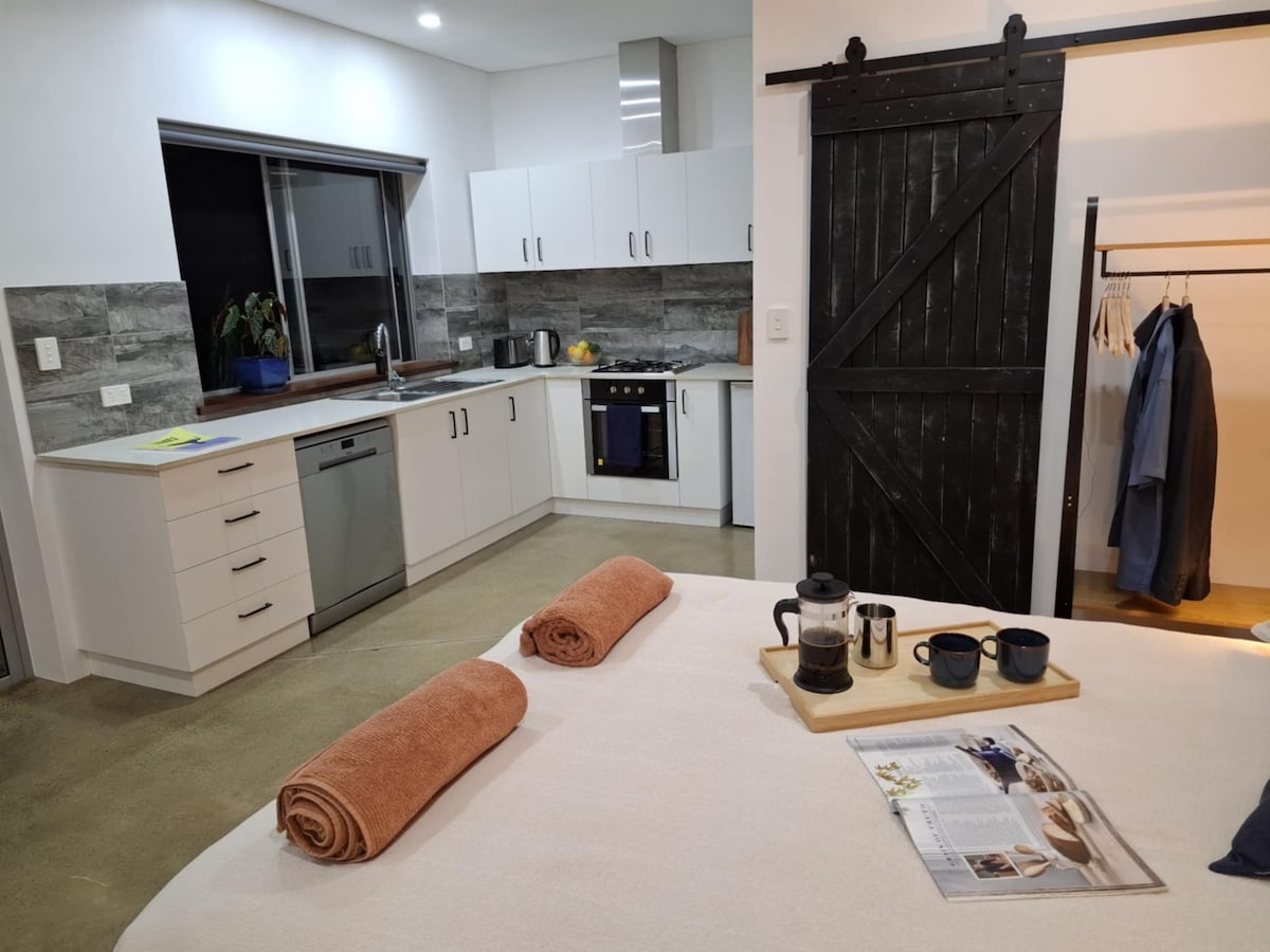 Sit back and relax in this custom built , stylish & private studio. Nestled amongst landscaped gardens , natural forest, abundant wildlife and all within a 3 minute drive to town or beach. Meelup beach !! Wake up to birdsong, walk amongst the forest or just sit on the deck and soak up the peaceful ambience. Very close to a selection of fine wineries , restaurants & breweries with surf, beach, biking and walk trails to top it off. We promise you won't want to leave.