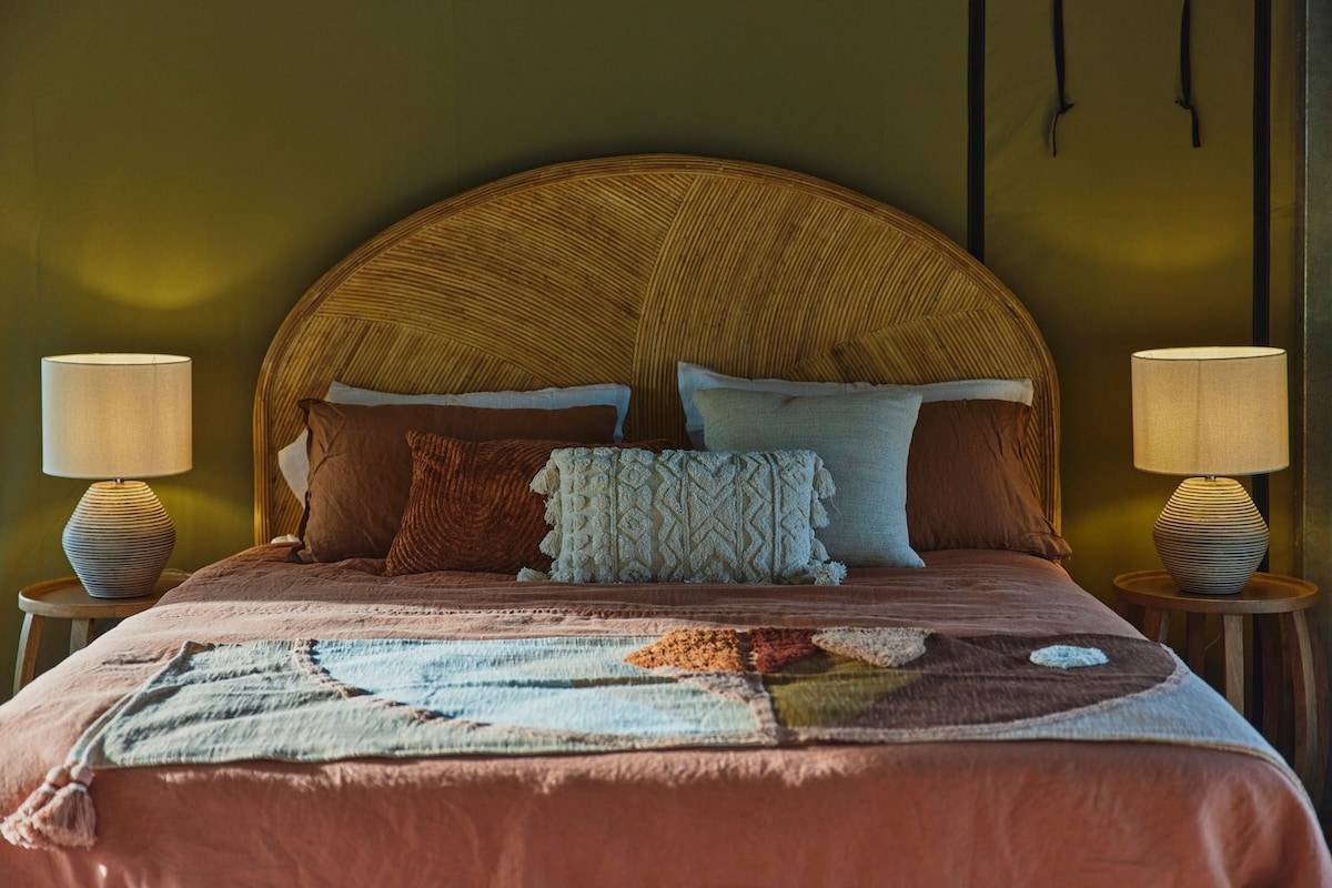 Abbeys Farm Retreat offers the perfect getaway to unwind and reconnect with nature. The glamping tent is nestled amongst the trees and overlooks the spring fed dam. It blends the freedom of carefree camping with luxuries you would hope to find in an upmarket resort. Soak your worries away in the outdoor stone bath tub, enjoy the outdoor fire pit under the stars, or simply lounge out in the hammocks, deck chairs, bean bags and day bed.