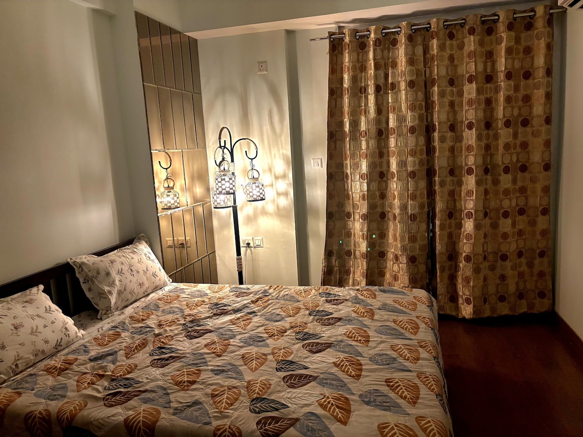 Stay at our spacious 2BR Park-View Retreat, 8.5 km from airports & 15 min ride to the metro. Enjoy airy balconies, park views, mahogany/wooden beds, a fully-equipped kitchen, high-speed Wi-Fi, Smart TV, complimentary toiletries, & local recommendations. Relish home-cooked meals, explore nearby market & malls, and unwind with serene jogging paths. Experience top-notch hospitality with flexible check-in/out, laundry services & optional airport transfers. Book now for a memorable Delhi stay!