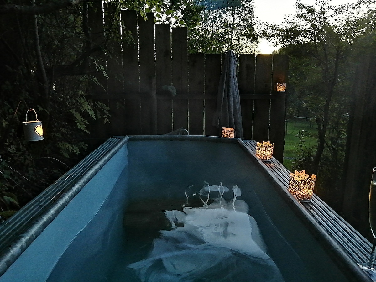 Enjoy the lovely setting of this romantic spot in nature. The shepherds hut has been thoughtfully designed and equipped with everything you need for a romantic get away. The hut is hidden away at the end of my garden and is extremely secluded. It has a log burner to keep you cosy in the winter and a pretty bbq area for the summer. The hot tub is available all year round for your own private and exclusive use.